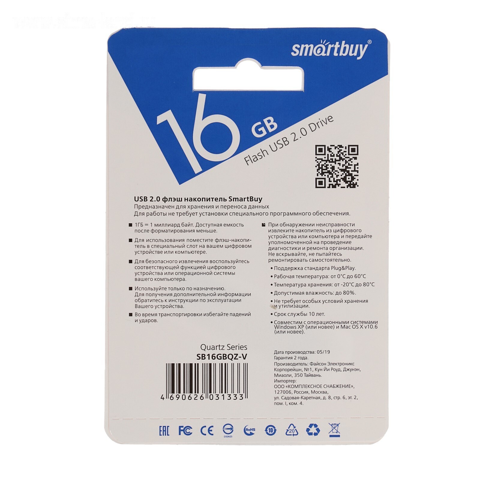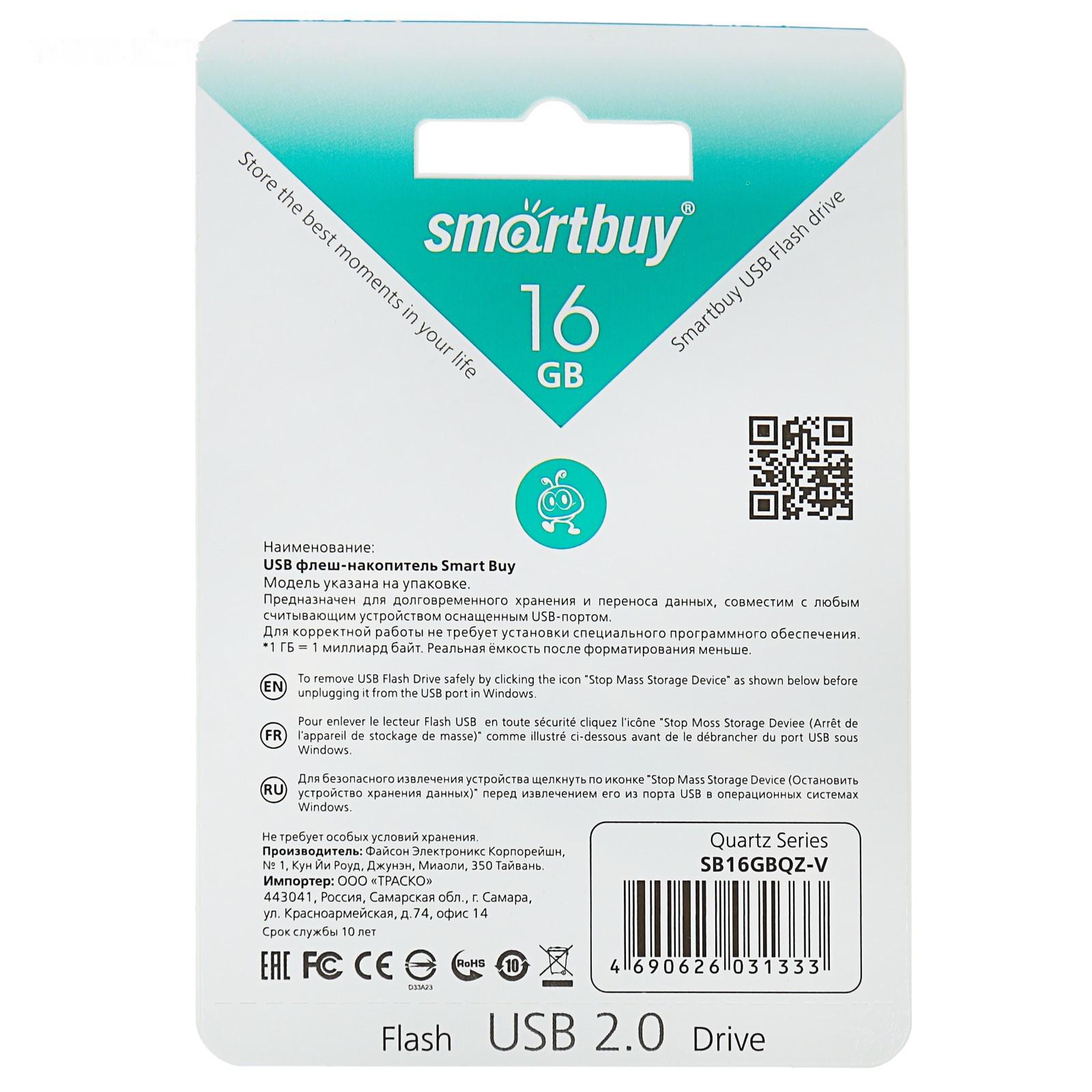 Флешка Smartbuy Quartz, 16 Гб, USB2.0, чт до 25 Мб/с, зап до 15 Мб/с, фиолетовая