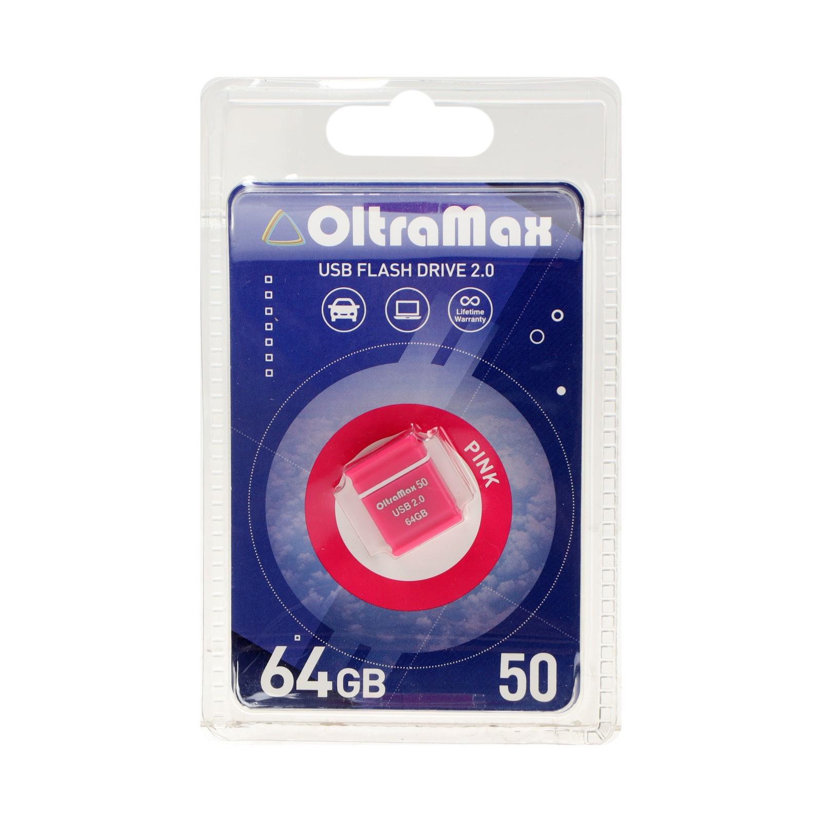 Флешка OltraMax 50, 64 Гб, USB2.0, чт до 15 Мб/с, зап до 8 Мб/с, розовая