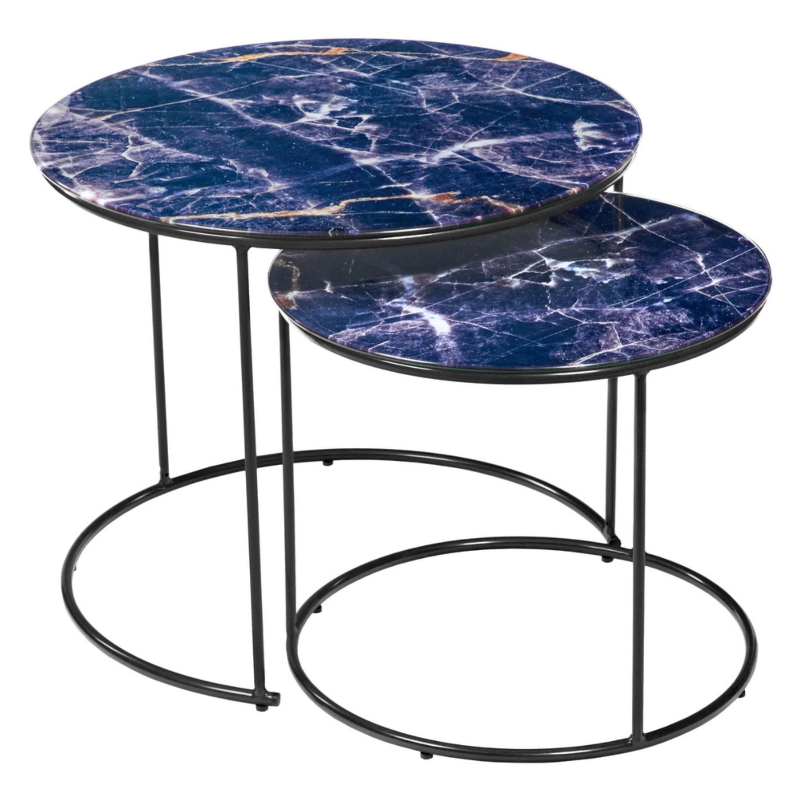 Набор кофейных столиков Tango, 2 шт, цвет тёмно-синий мрамор с чёрными ножками