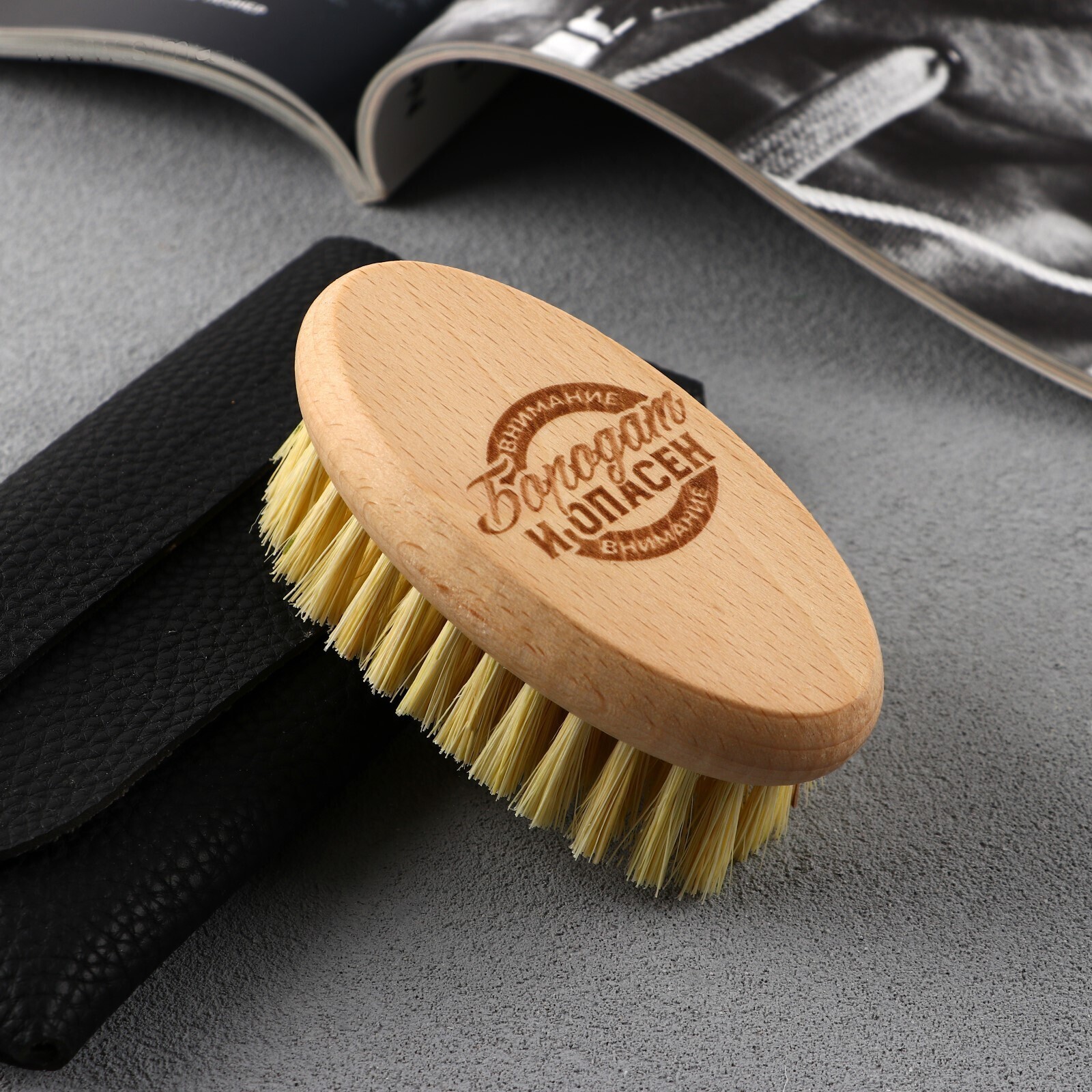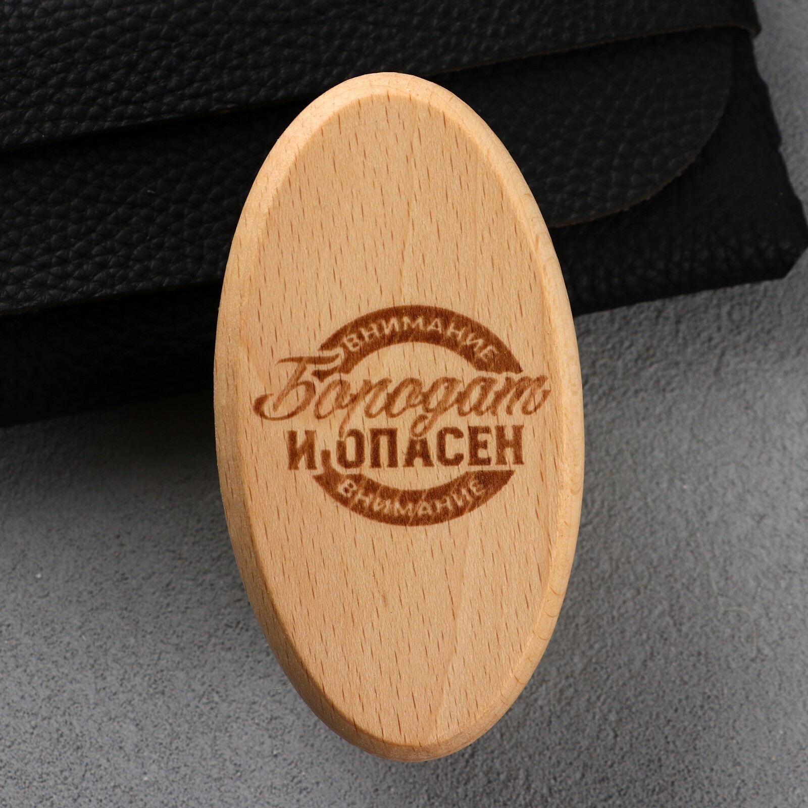 Щетка для бороды "Бородат и опасен", натуральная щетина, бук, 10 х 5.4 см