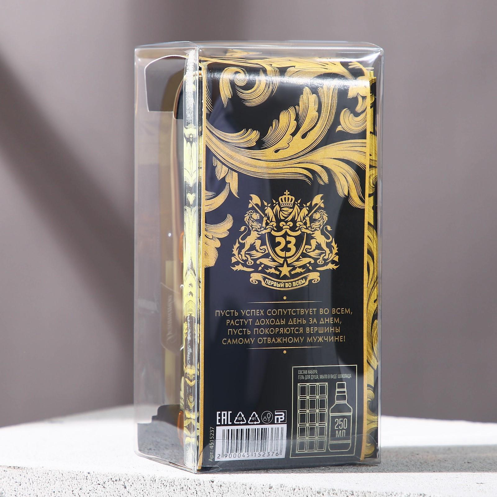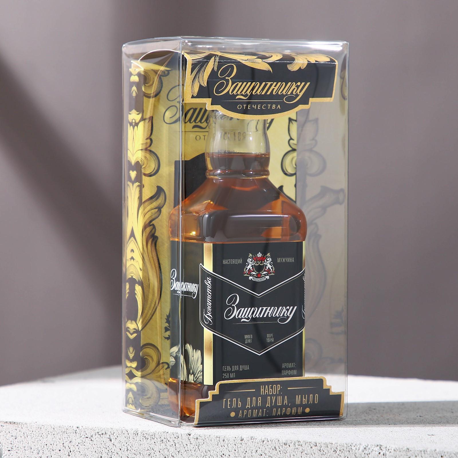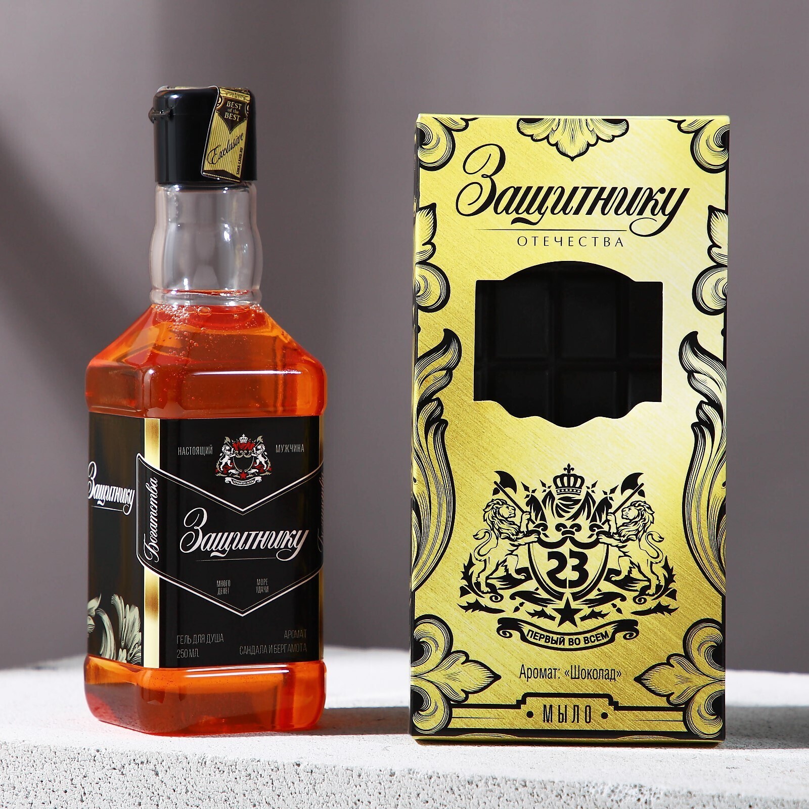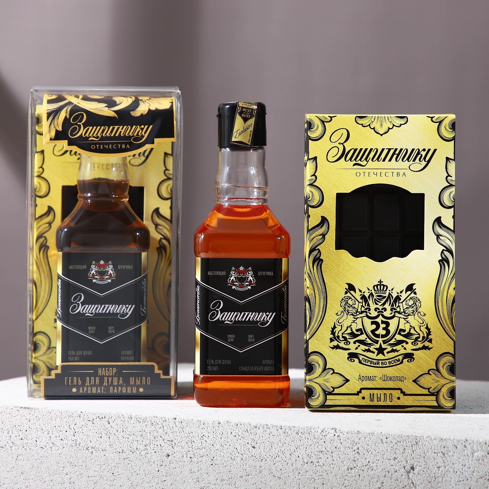 Набор «Защитнику»: гель для душа во флаконе виски, мужской парфюм, 250 мл; мыло в форме плитки шоколада