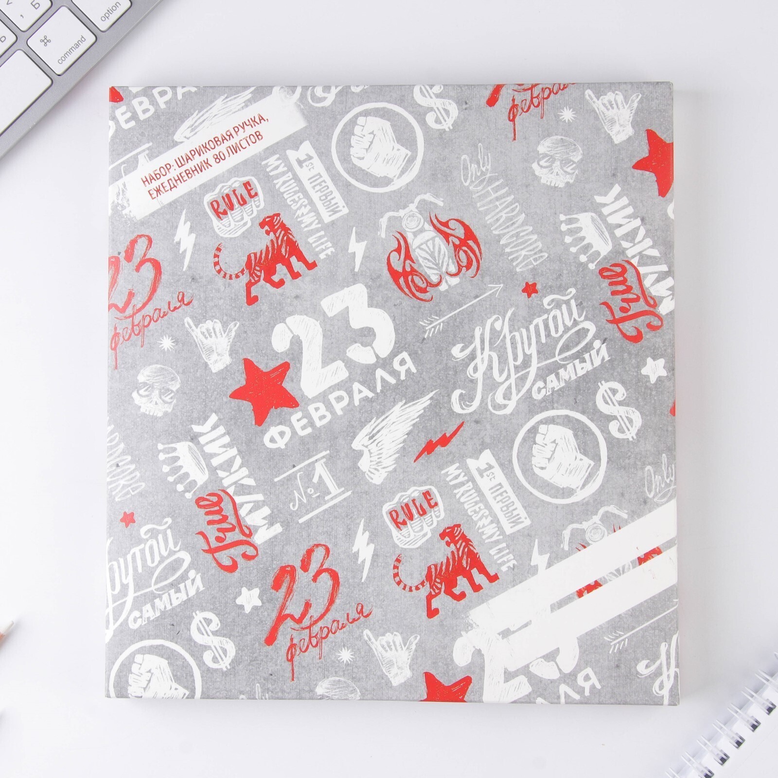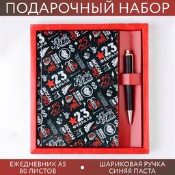 Подарочный набор "23 февраля шрифтовуха": ежедневник 80 листов и ручка
