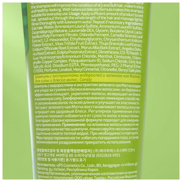 В наличии 527 РШампунь Consly с экстрактами водорослей и зеленого чая Матча для...
