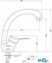 - Высота излива 205 мм