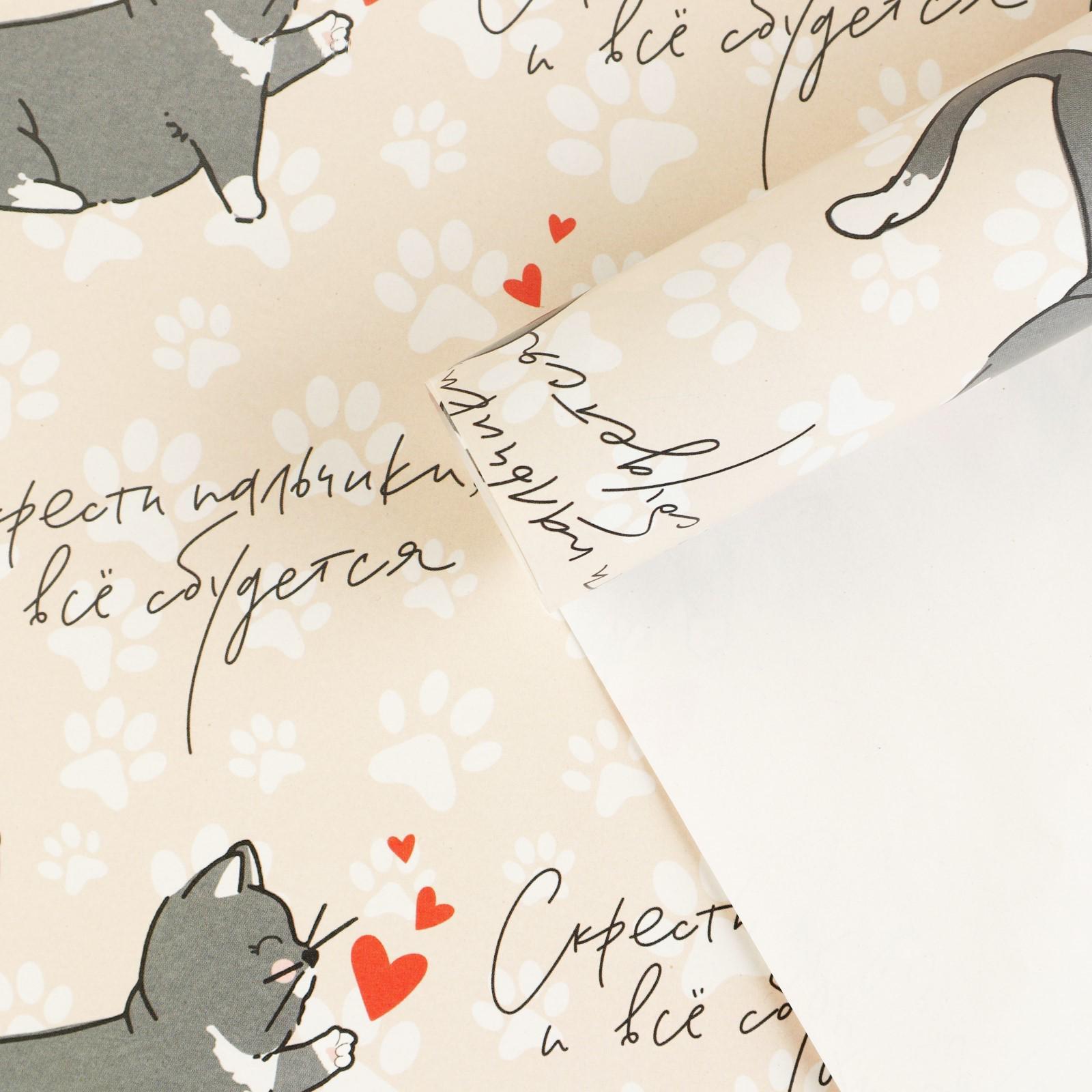 Бумага упаковочная глянцевая «Котики», 70 × 100 см