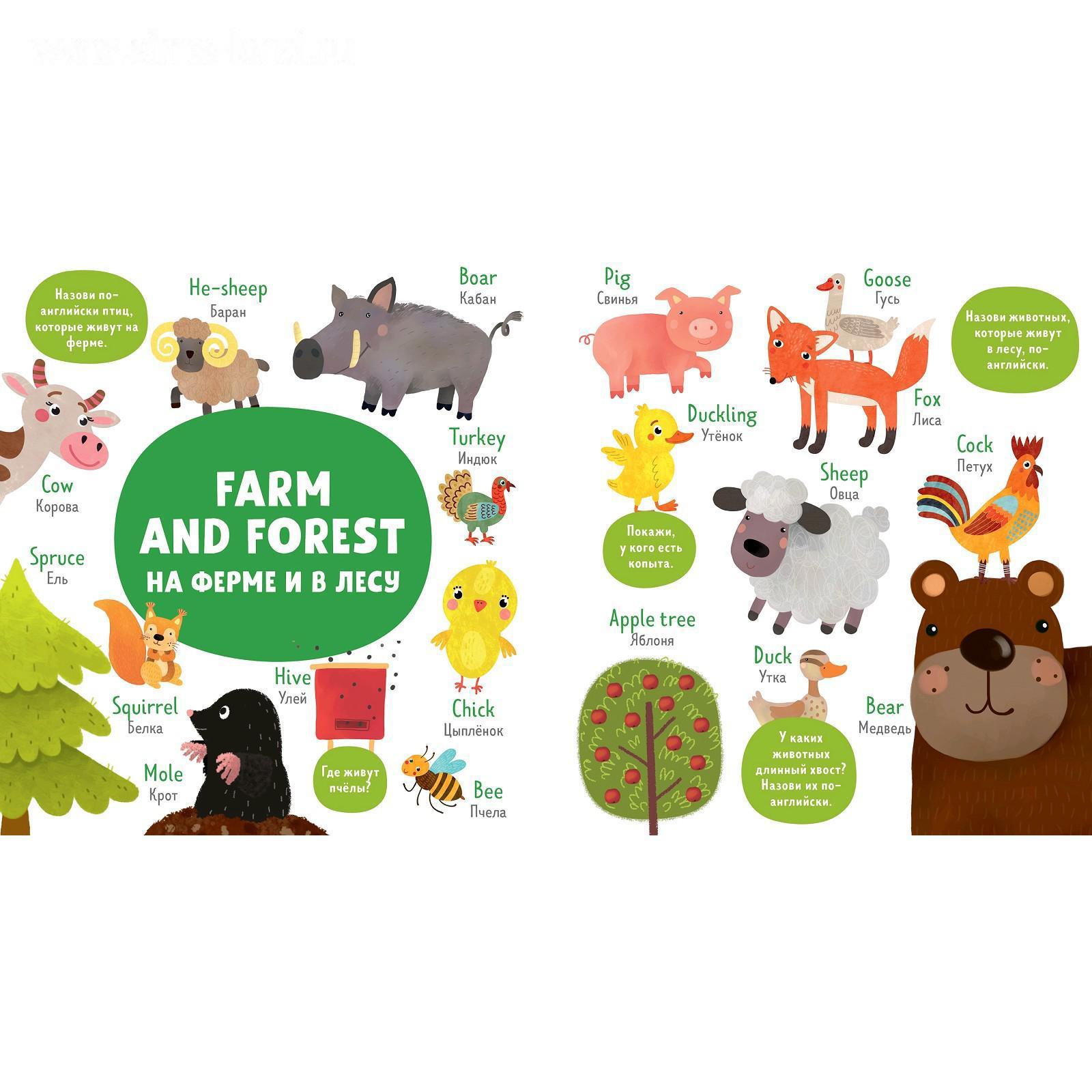 Эта книжка-игра с веселыми заданиями идеально подходит для первого знакомства с английским языком! С ее помощью малыш выучит новые слова по 11 базовым лексическим темам на русском и английском языках сразу! Удобный формат, яркие рисунки, плотный картон - вам понравится играть с этой книгой снова и снова!