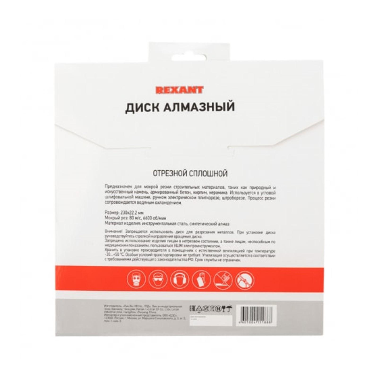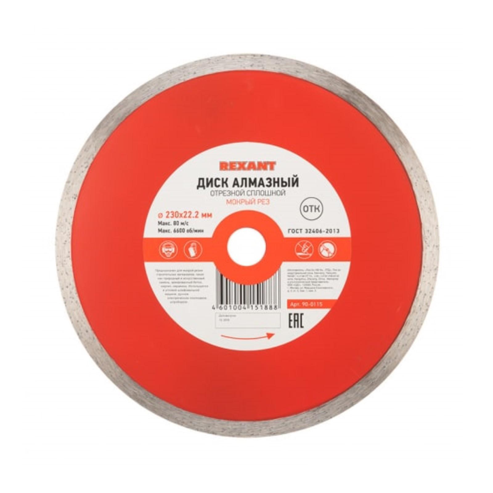 Диск алмазный отрезной REXANT, сплошной, мокрый рез, 230x22.2 мм