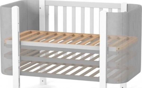 - рівні встановлення спального місця (від підлоги до верхньої точки підматрацника, коли ліжечко на ніжках): 26,5 / 41,5 / 52,5 / 56,5 см;