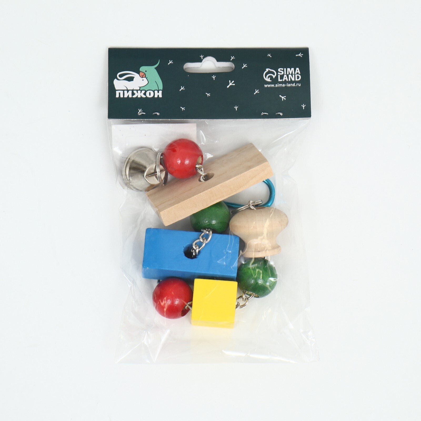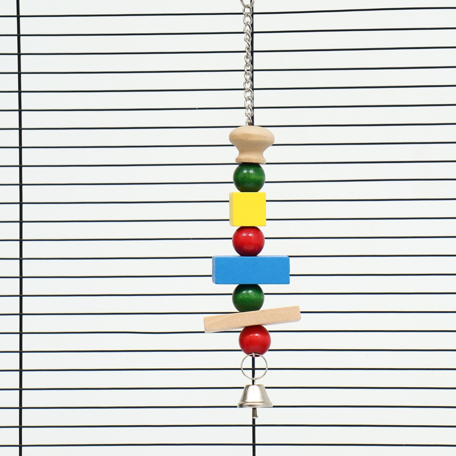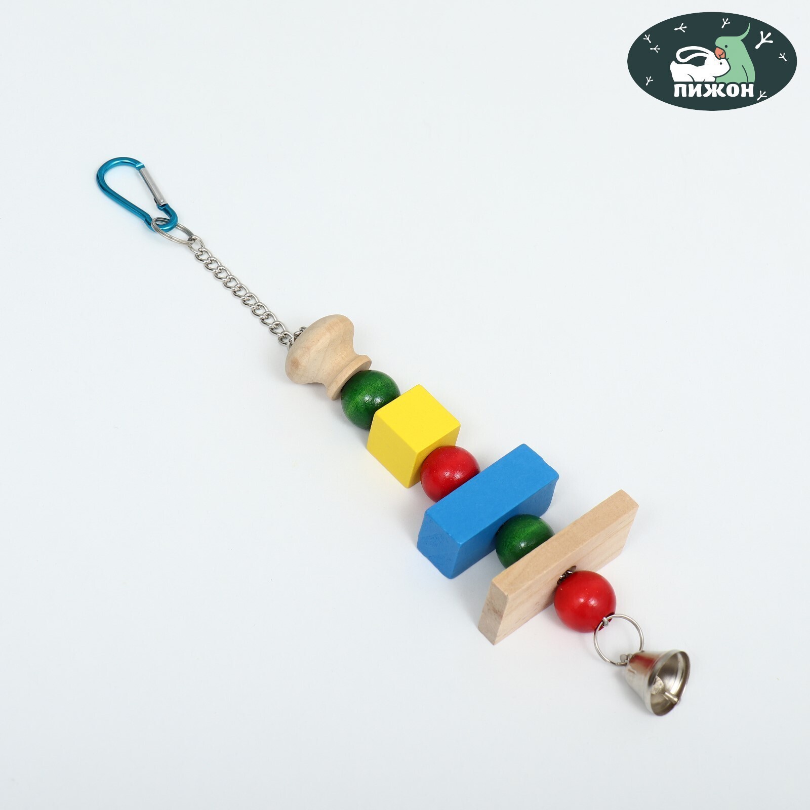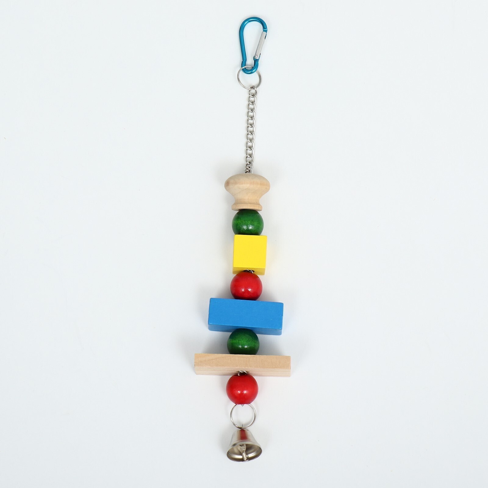 Игрушка для птиц из бусин с колокольчиком, 39 см, микс цветов
