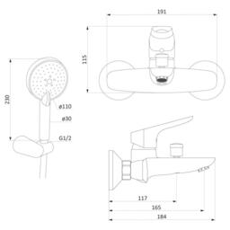 Смеситель для душа RedBlu by Damixa Origin Bit 771300000, Набор 2 в 1, душевой набор, хром