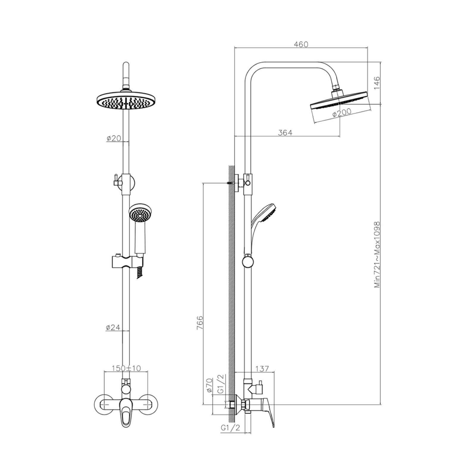 Смеситель для душа DECOROOM DR21070, однорычажный, без излива, лейка, тропический душ, хром 770450