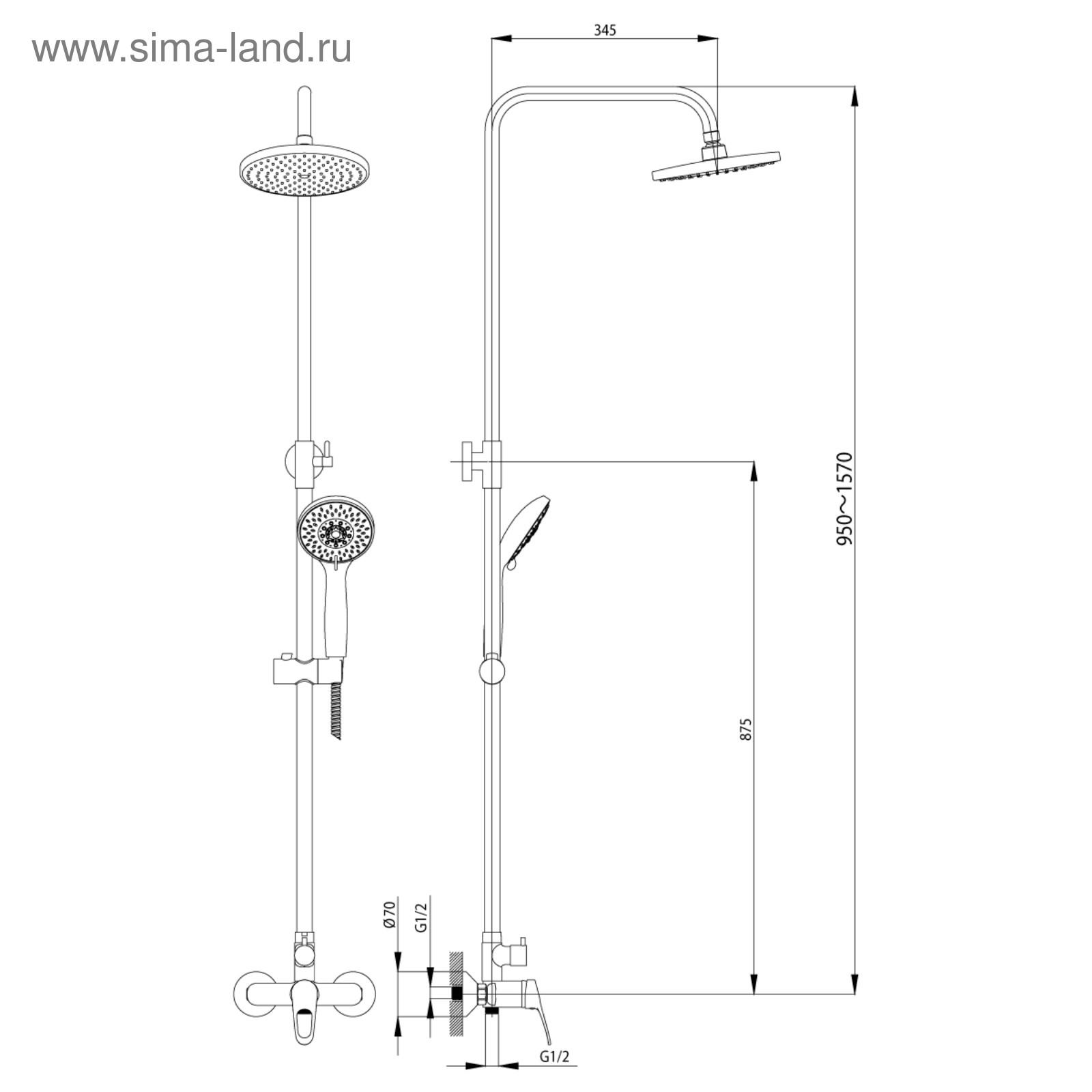Смеситель для душа Rossinka B35-45, одноручный, с верхней лейкой, цвет хром