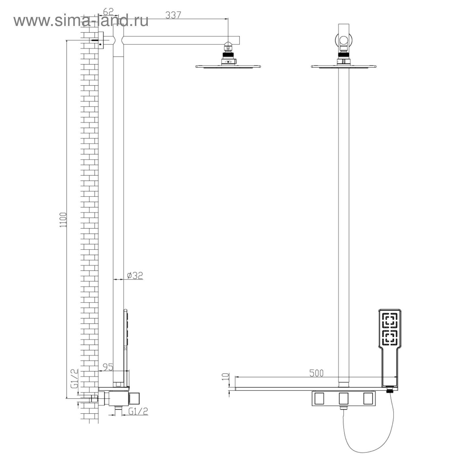 Смеситель для душа Lemark LM7001C, двухвентильный, с верхней душевой лейкой, цвет хром