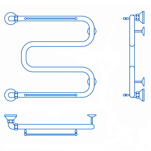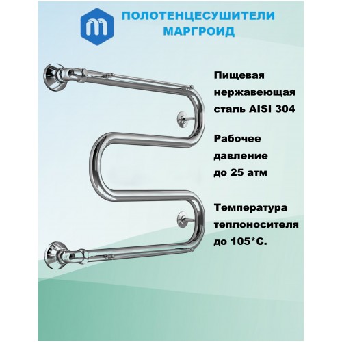 Полотенцесушитель Маргроид Вид 38 с полкой боковое подключение, форма - М-образная, для любого по стилю интерьера ванной комнаты.