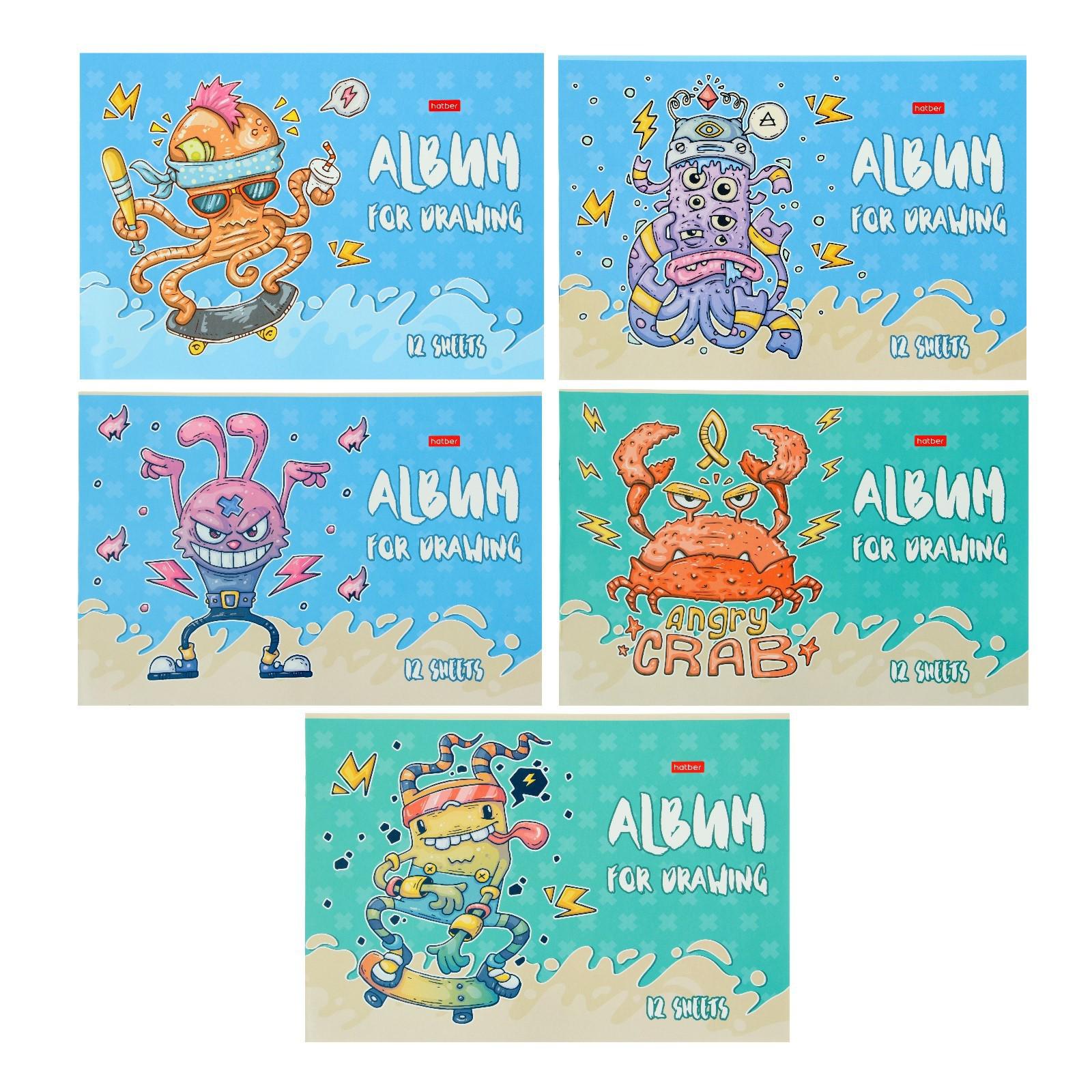 Альбом для рисования А4, 12 листов на скрепке Hatber "Freaky friends", блок 100 г/м2, МИКС