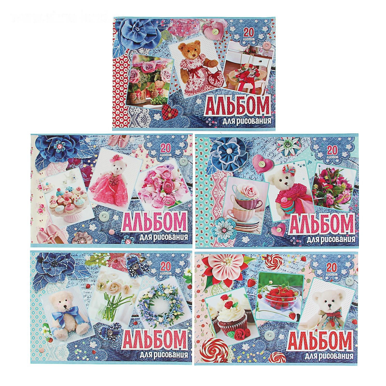 Альбом для рисования А4, 20 листов на скрепке "Для девочек", обложка мелованный картон, блок 100 г/м2, МИКС