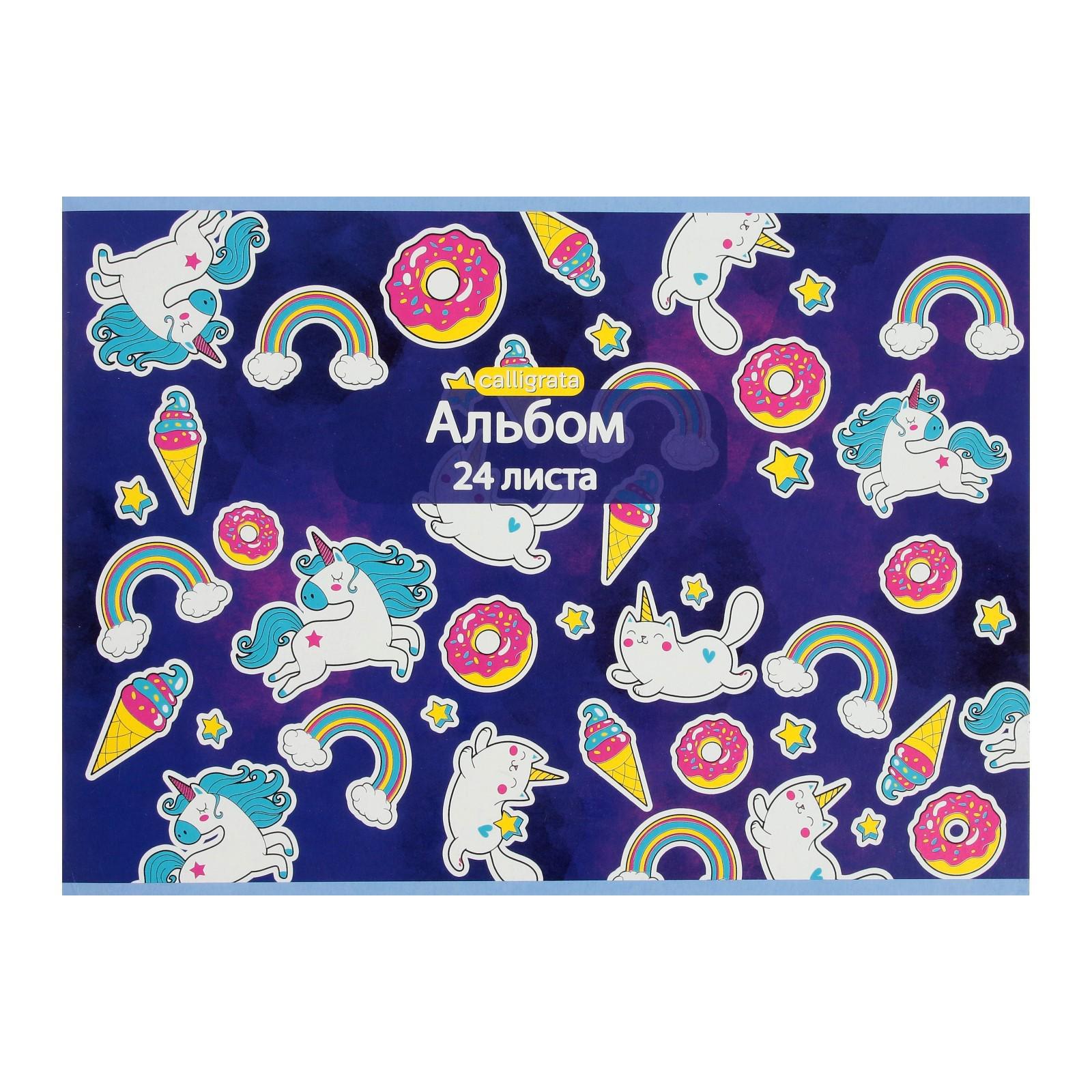 Альбом для рисования А4, 24 листа на скрепке "Настоящие единороги", обложка мелованный картон, блок 100 г/м²