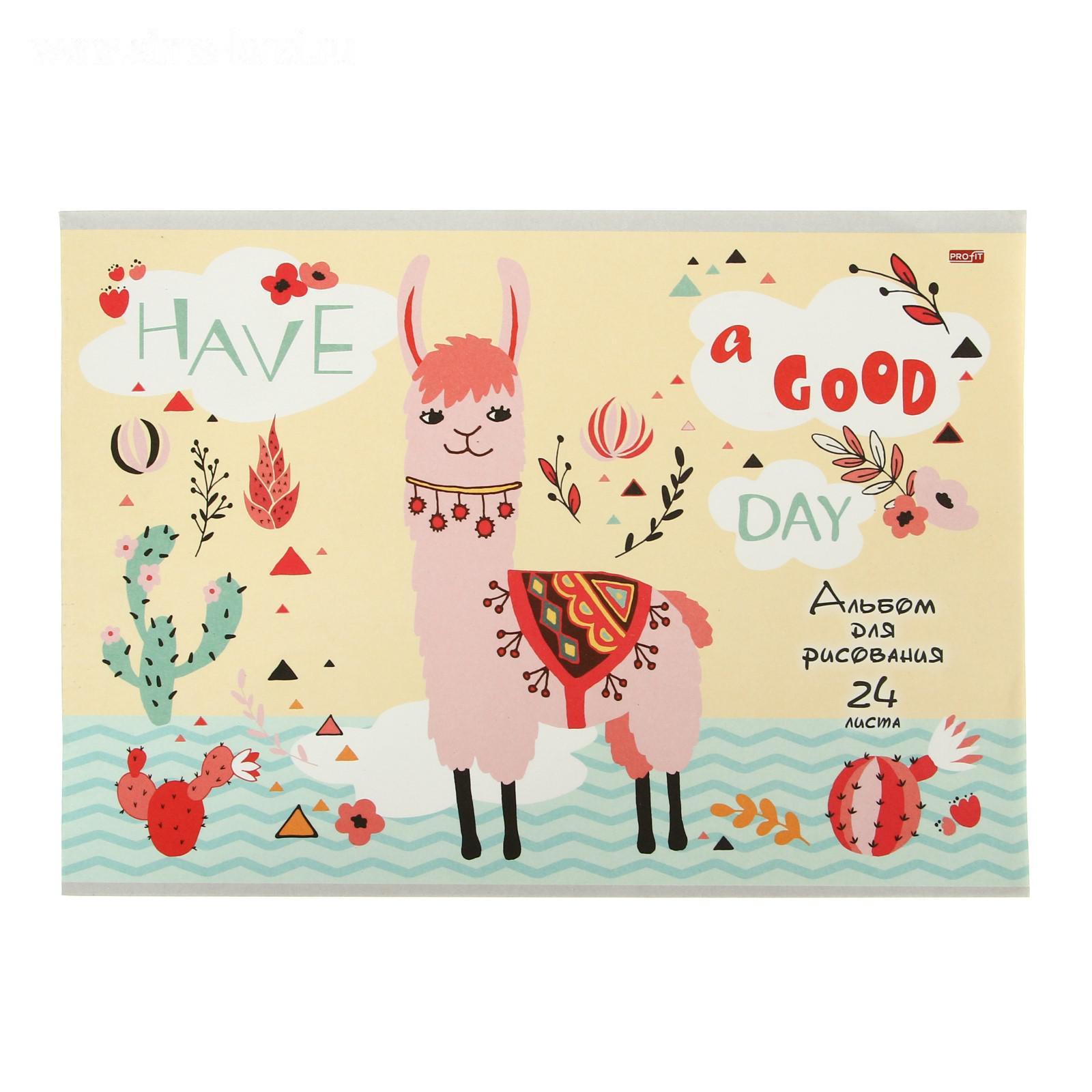 Альбом для рисования А4, 24 листа на скрепке "Спокойная лама", бумажная обложка, блок 100 г/м2