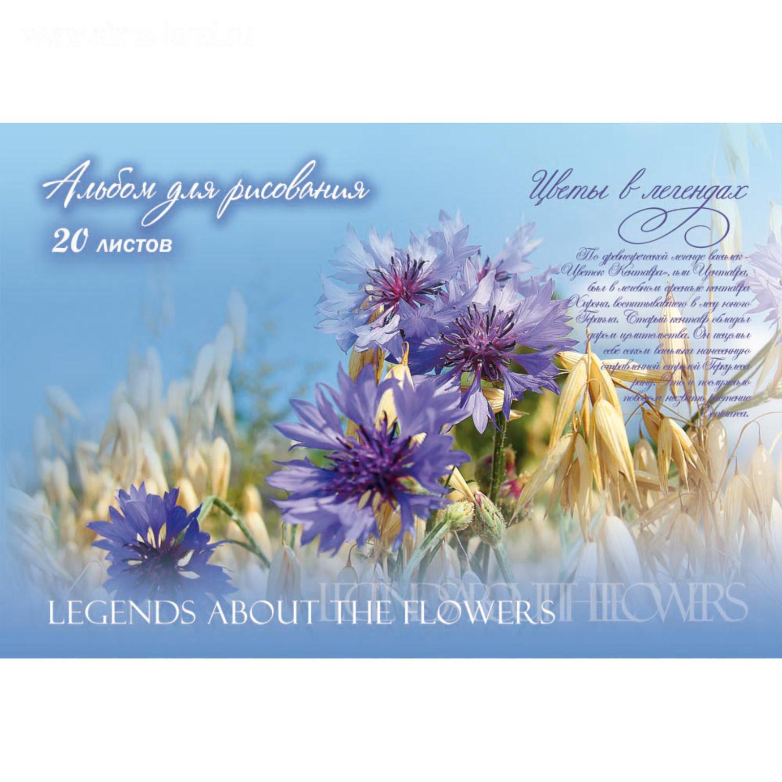 Альбом для рисования А4, 20 листов на скрепке "Цветы в легендах", обложка мелованный картон, блок 100 г/м2