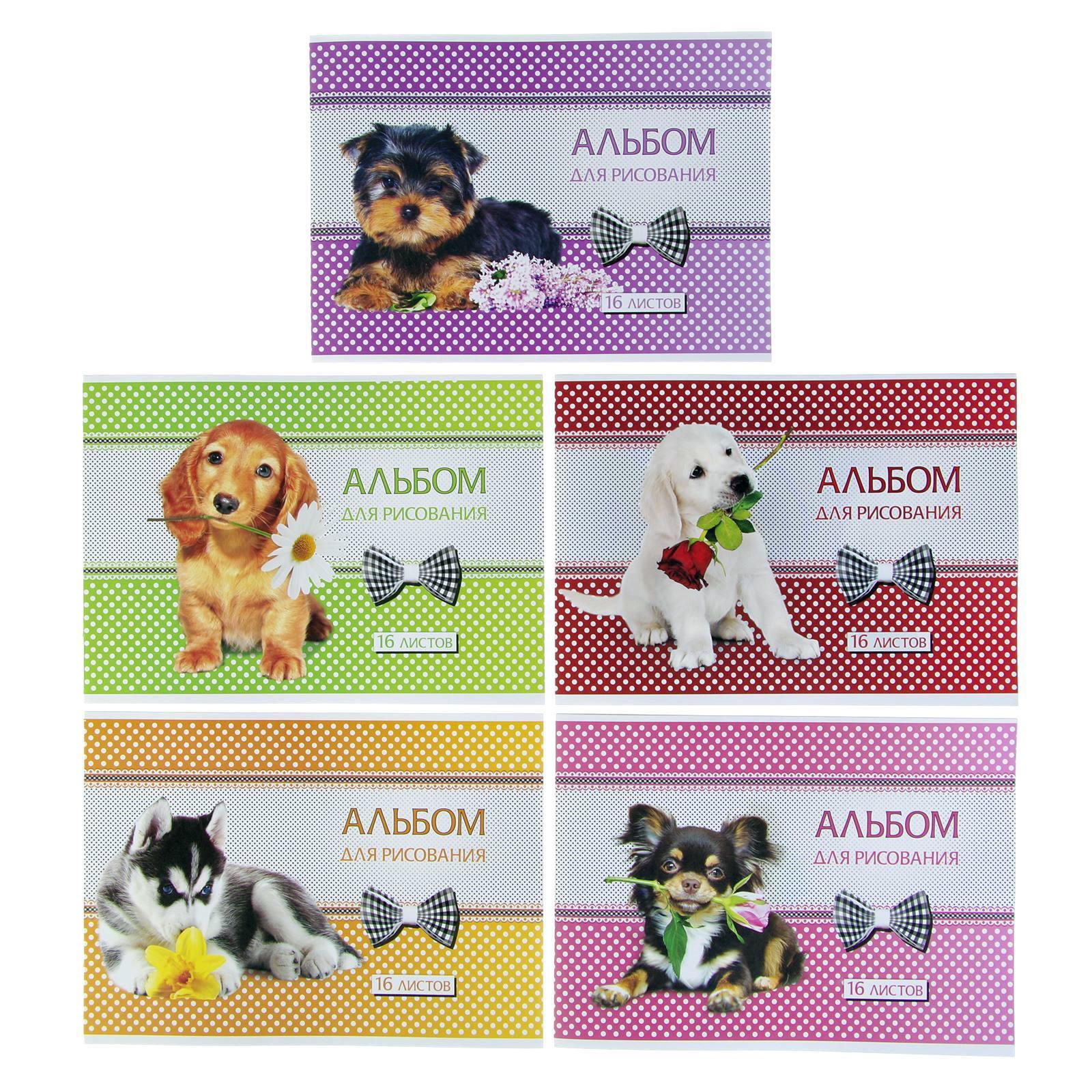 Альбом для рисования А4, 16 листов, на скрепке, "Щенки", обложка мелованный картон, блок 100 г/м², перфорация на отрыв, МИКС