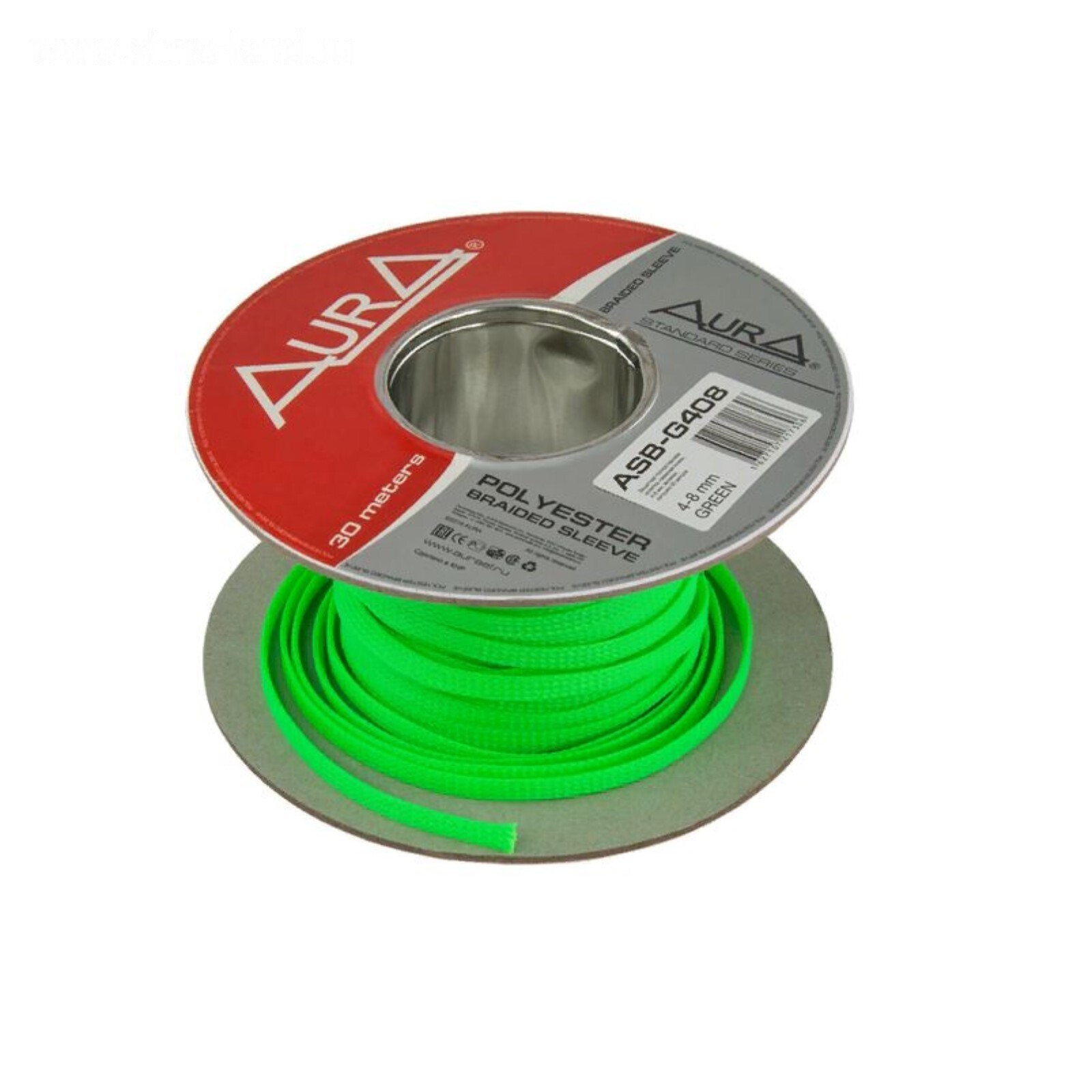 Кабельная оплётка Aura ASB-G408, полиэстер, 4-8 мм, зеленый, бухта 30 м
