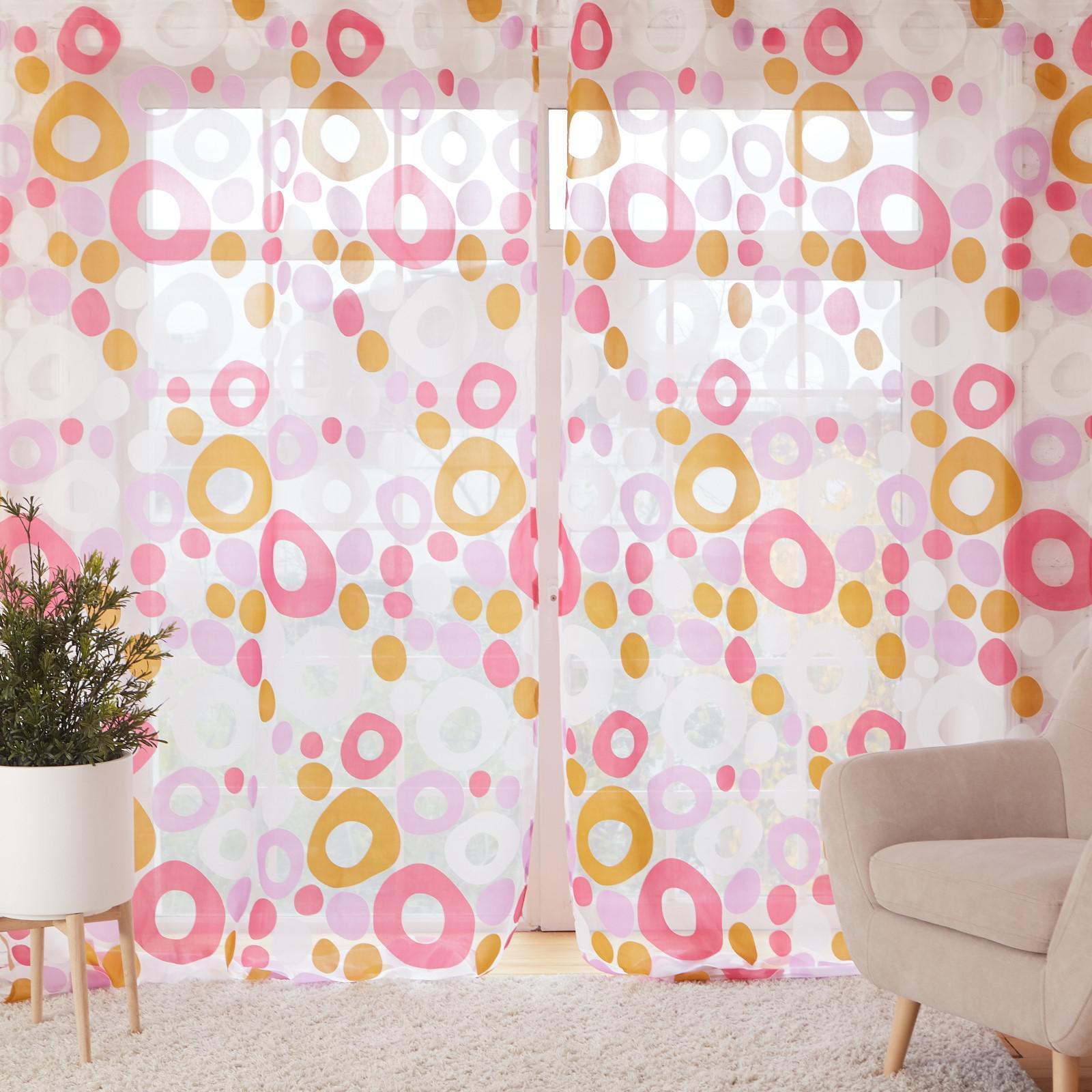 Тюль "Этель" Калейдоскоп (цвет розовый) без утяжелителя, ширина 135 см, высота 270 см