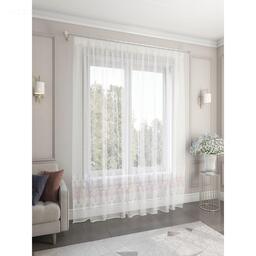 Штора, размер 300x260 см, цвет белый с розовой вышивкой, вуаль