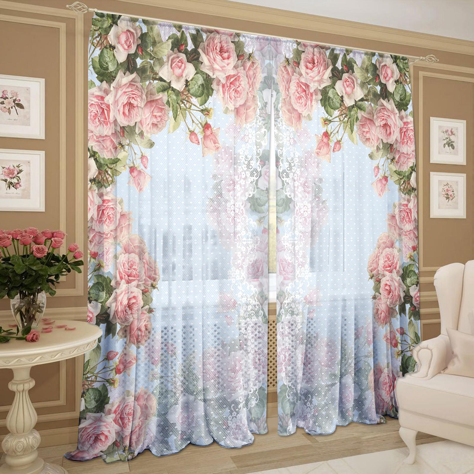 Тюль Венский вальс голубой 147х267 +/- 3см, 2шт, шифон, п/э