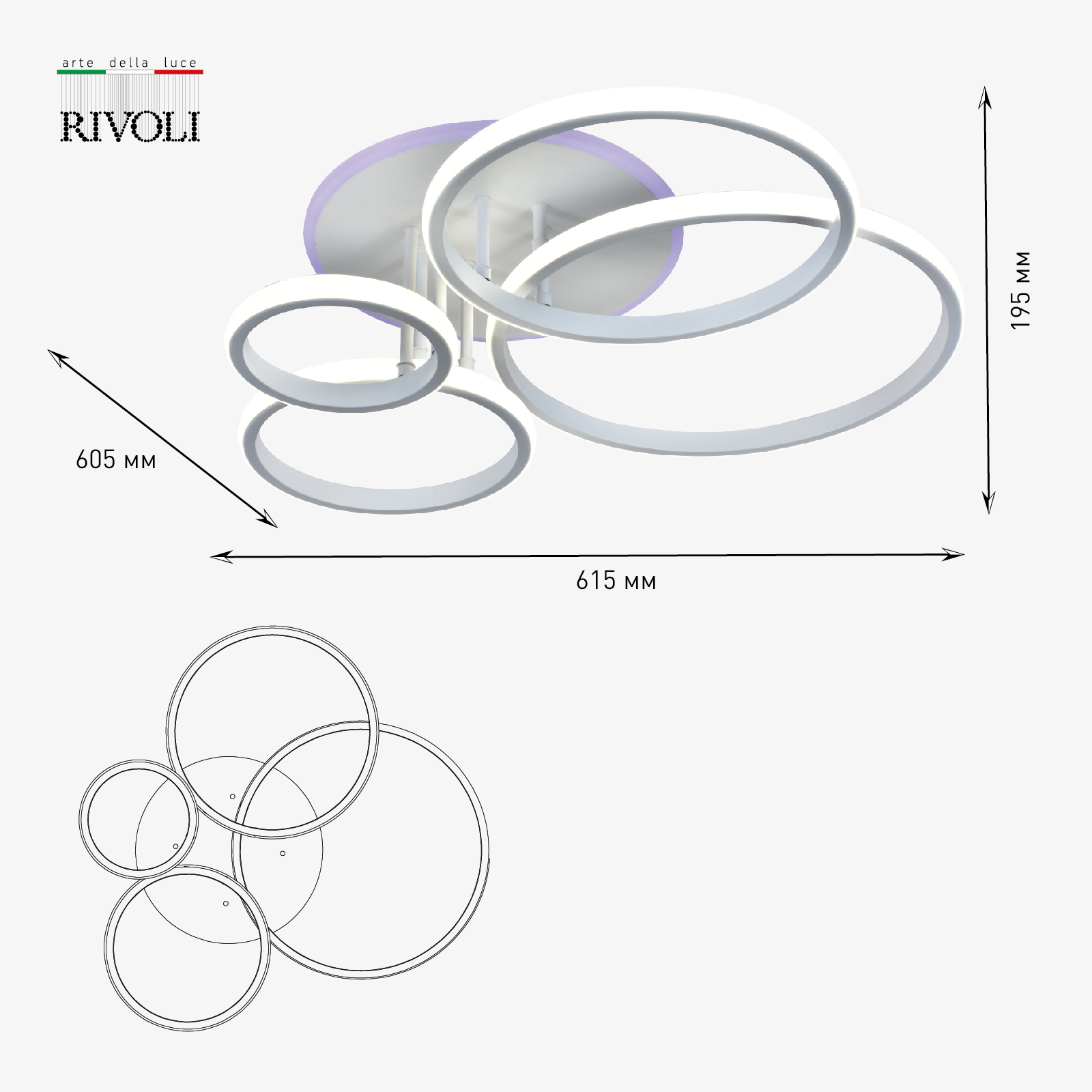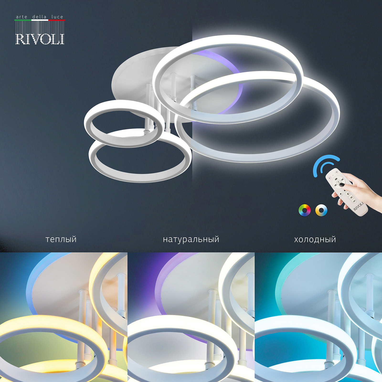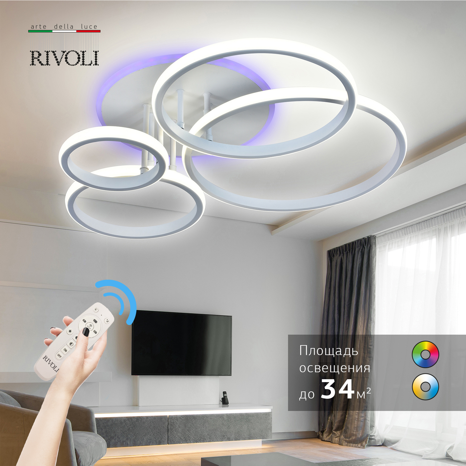 Светильник потолочный светодиодный Rivoli Carmen 6086-103 с пультом 120 Вт + 8 Вт 4000К - 6000К LED модерн