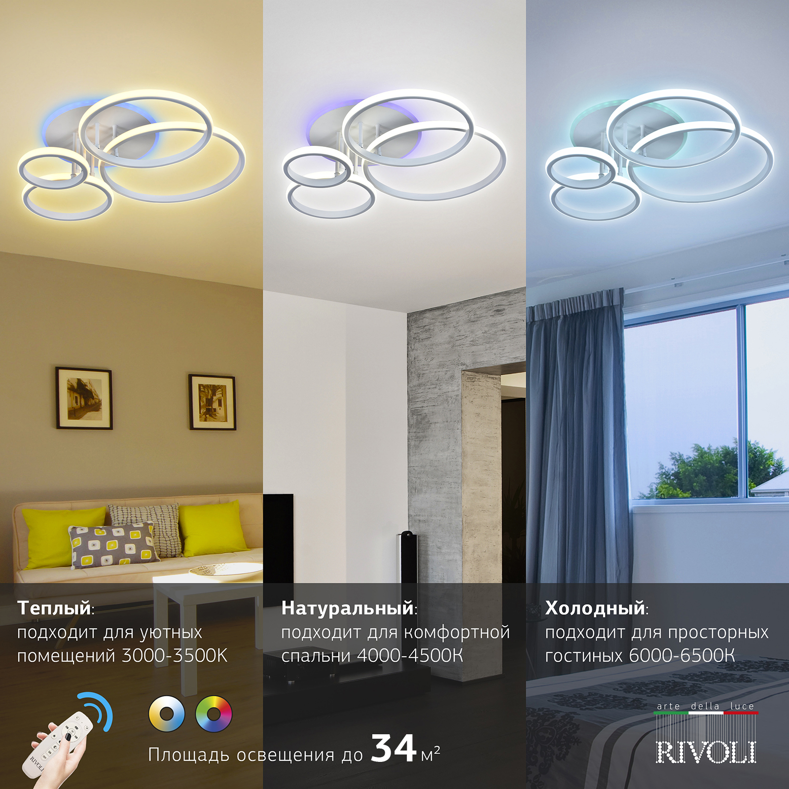 • Пульт регулировка яркости, цветовой t°, RGB