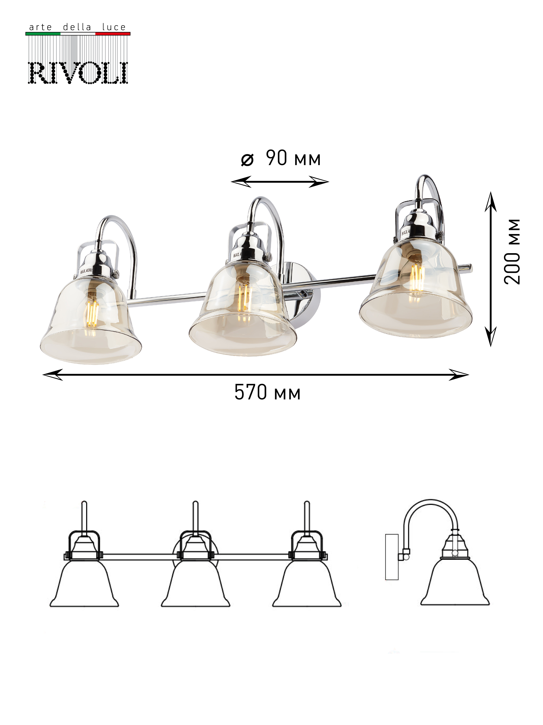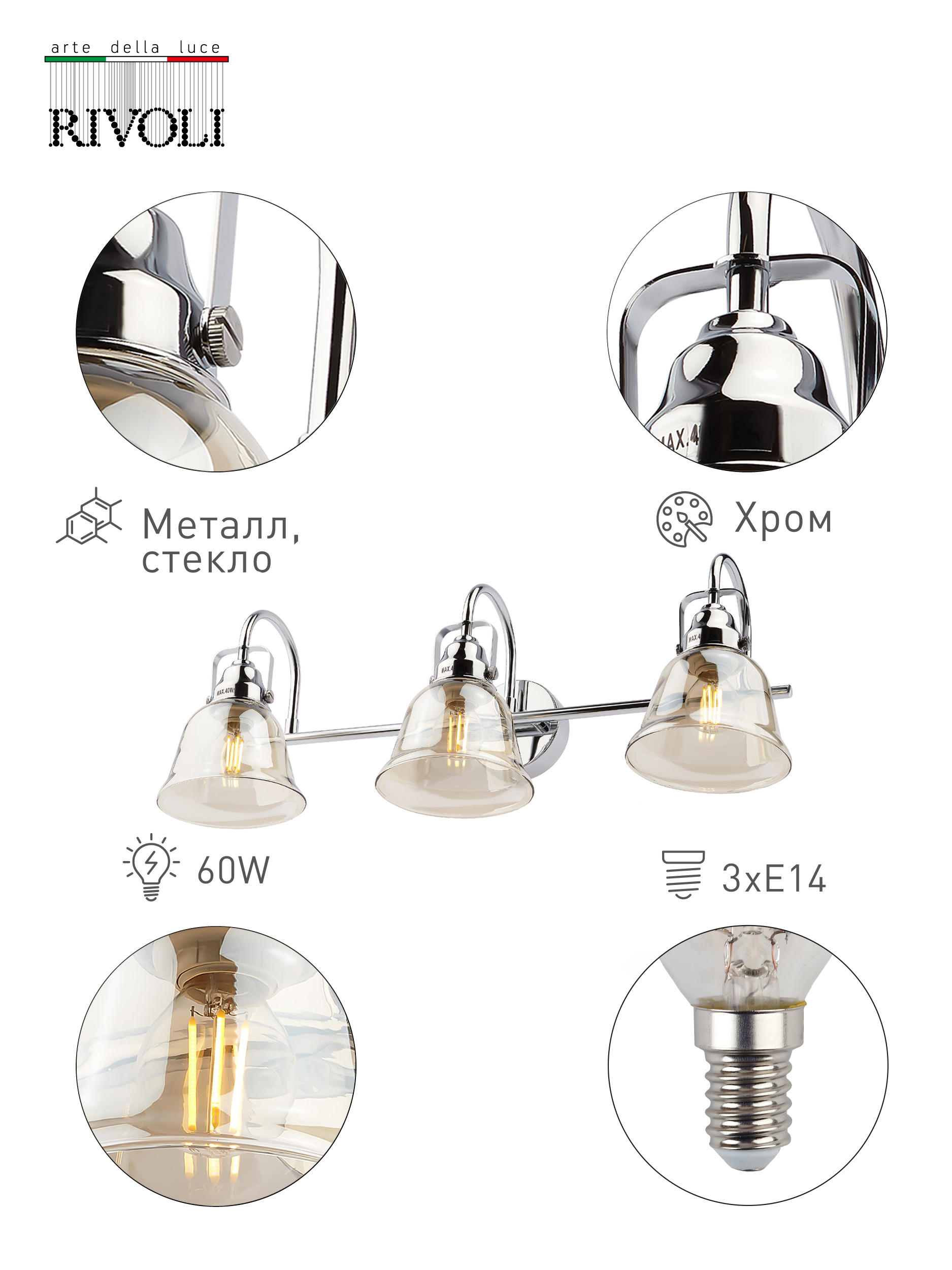 Светильник настенный Rivoli Avrora 5055-703 3 х E14 40 Вт лофт - кантриКод товара: Б0047346