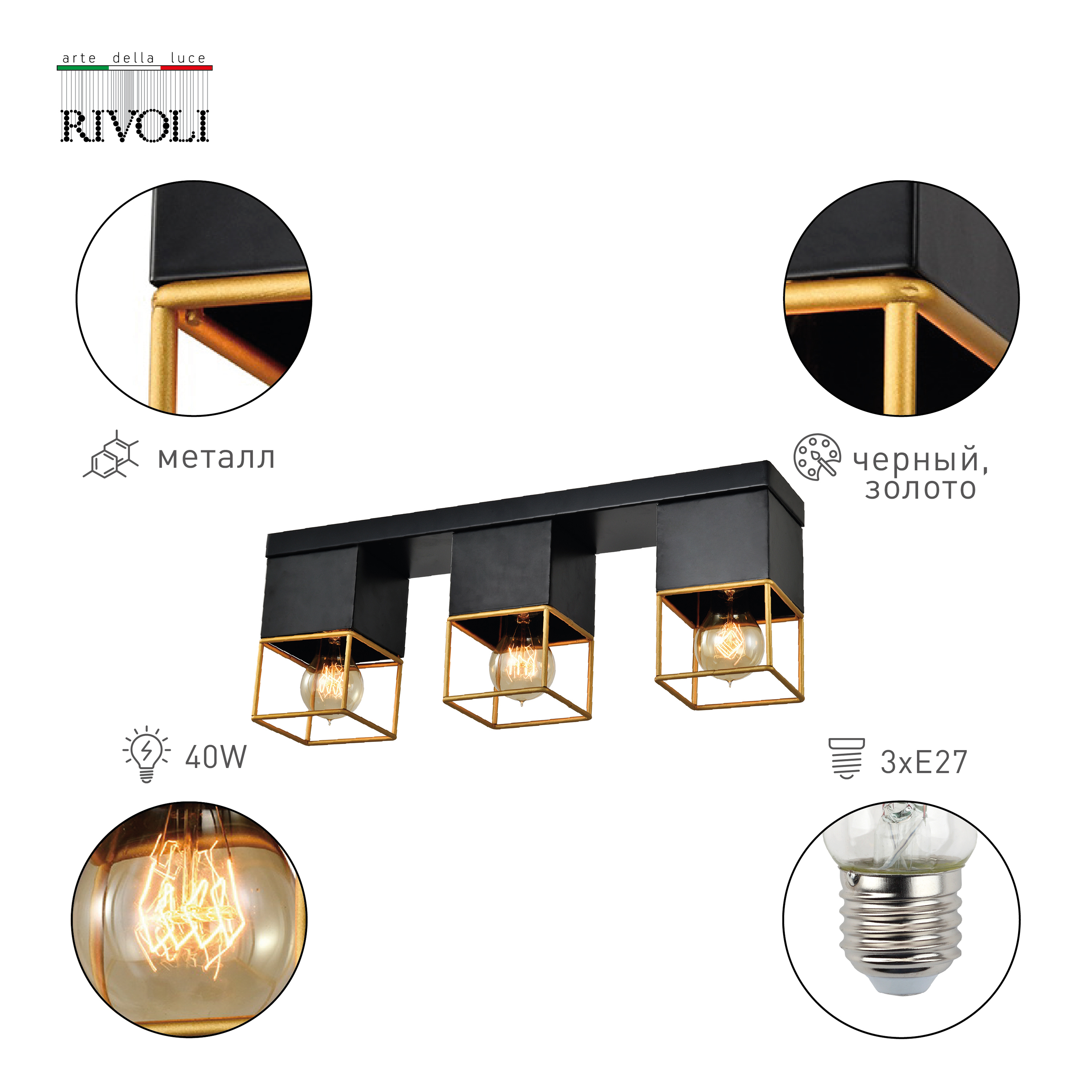 Светильник потолочный Rivoli Nadin 7049-703 3 х Е27 40 Вт лофт-кантриКод товара: Б0053057