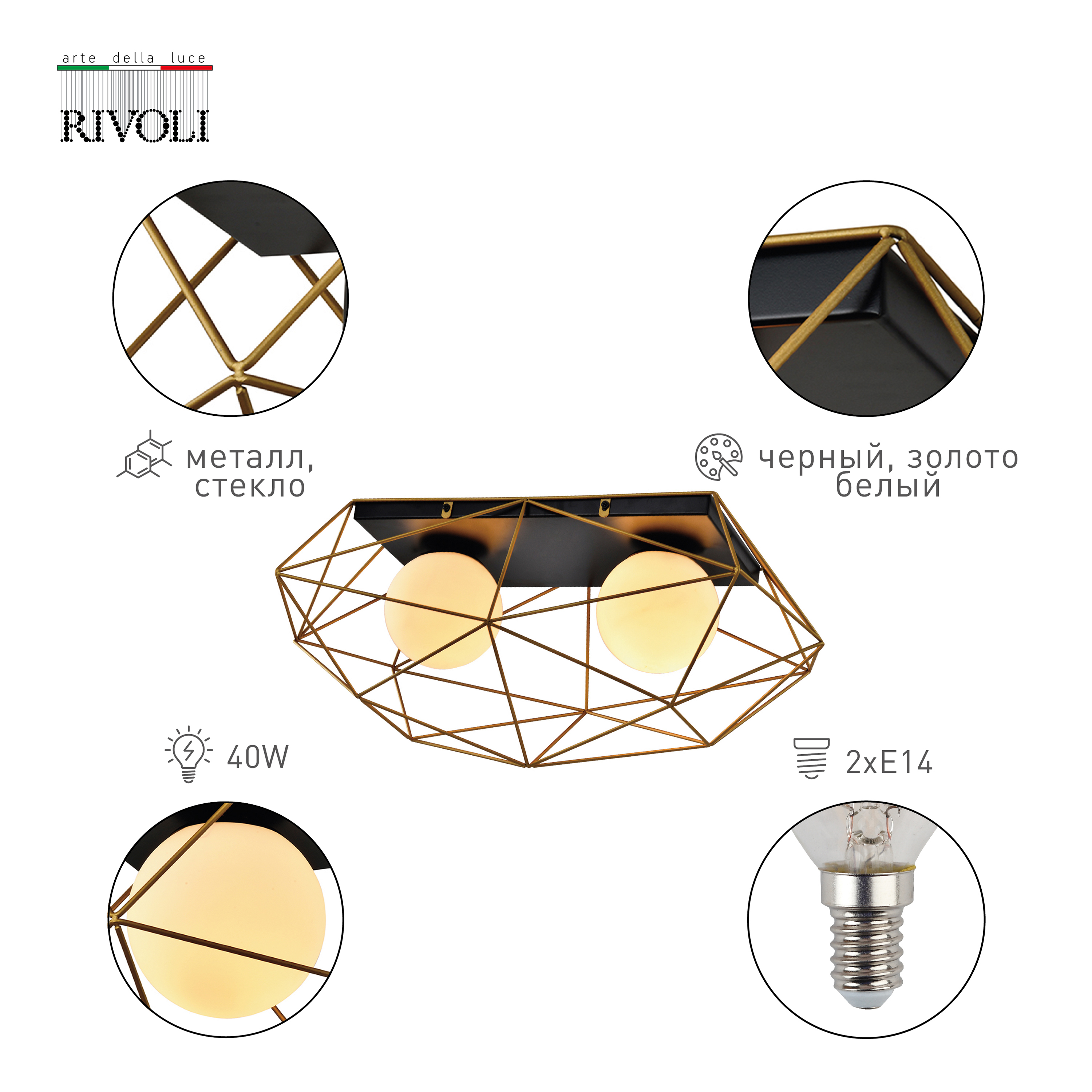 Светильник потолочный Rivoli Raila 4098-312 2 х Е14 40 Вт дизайн для натяжных потолковКод товара: Б0053046