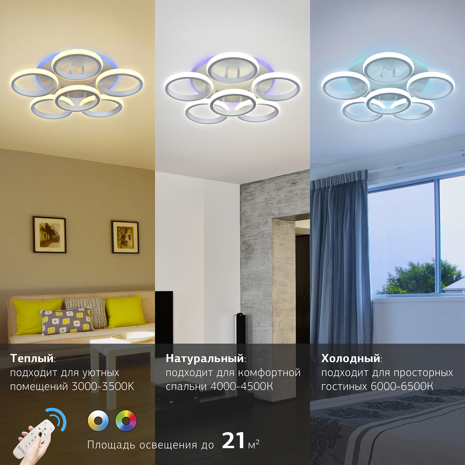 Светильник потолочный светодиодный Rivoli Kresenz 6057-106 с пультом 108 Вт + 8 Вт 4000К - 6000К LED модерн