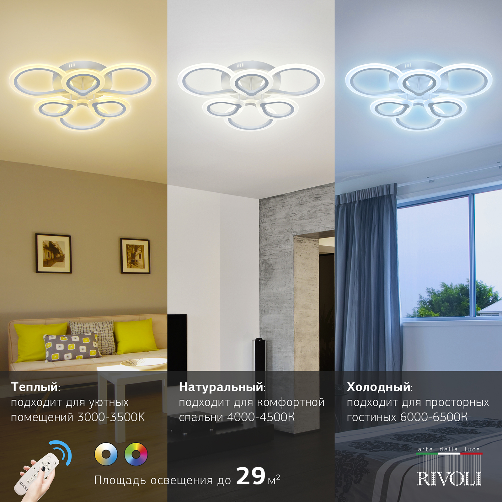 Светильник потолочный Rivoli Lisbeth 6047-106 светодиодный с пультом 66 Вт 4000К - 6000К LED модернКод товара: Б0052400