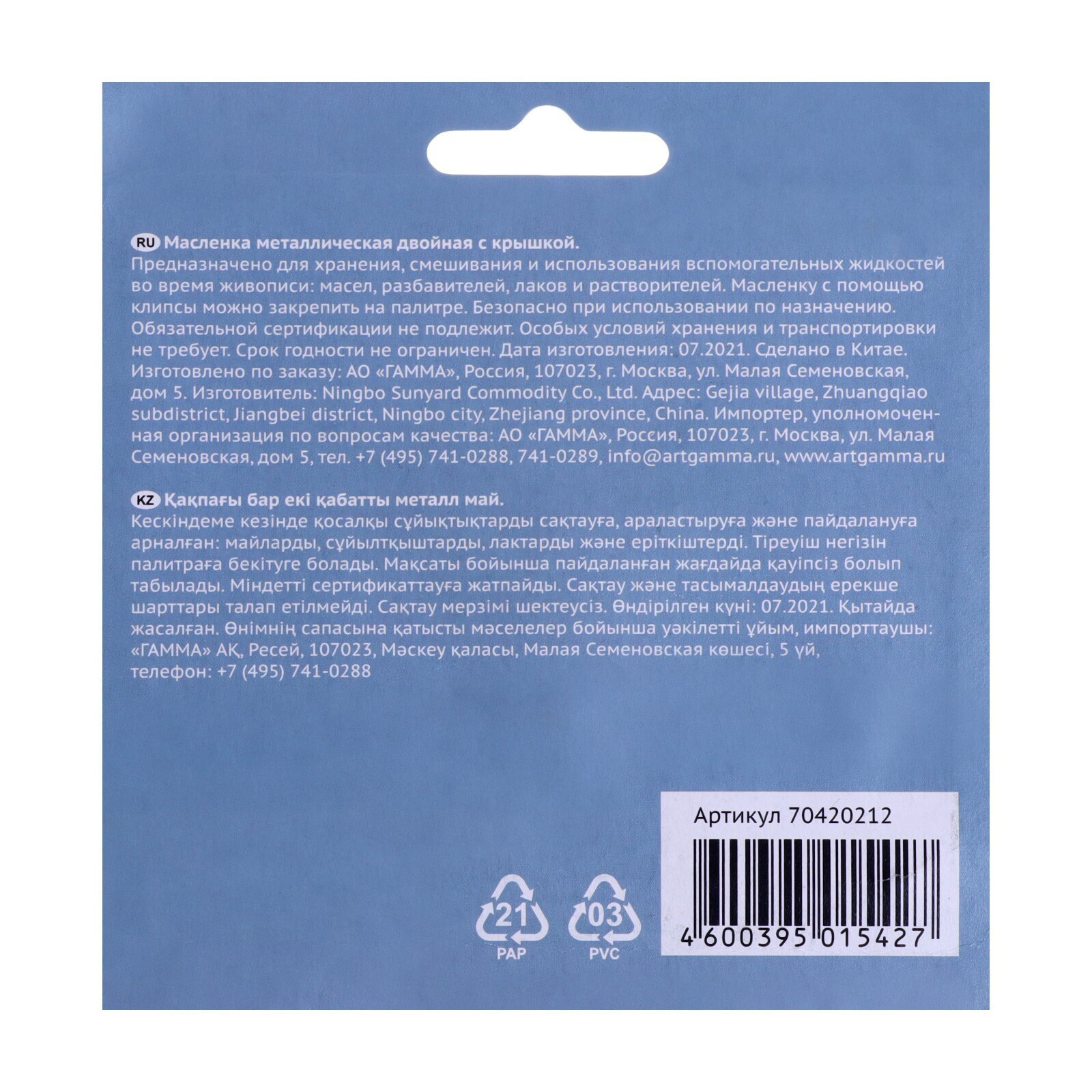 Масленка металлическая, двойная, с крышкой, диаметр 4.5 см, Гамма "Студия"