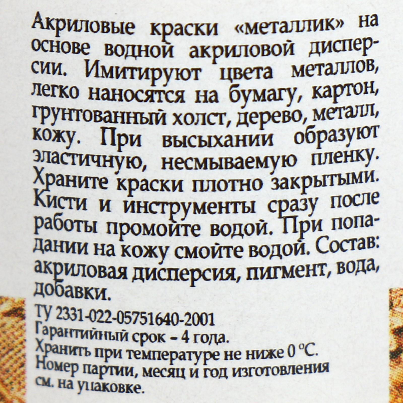 Краска акриловая Metallic 20 мл, ЗХК Decola, Золото геральдик, 4926970