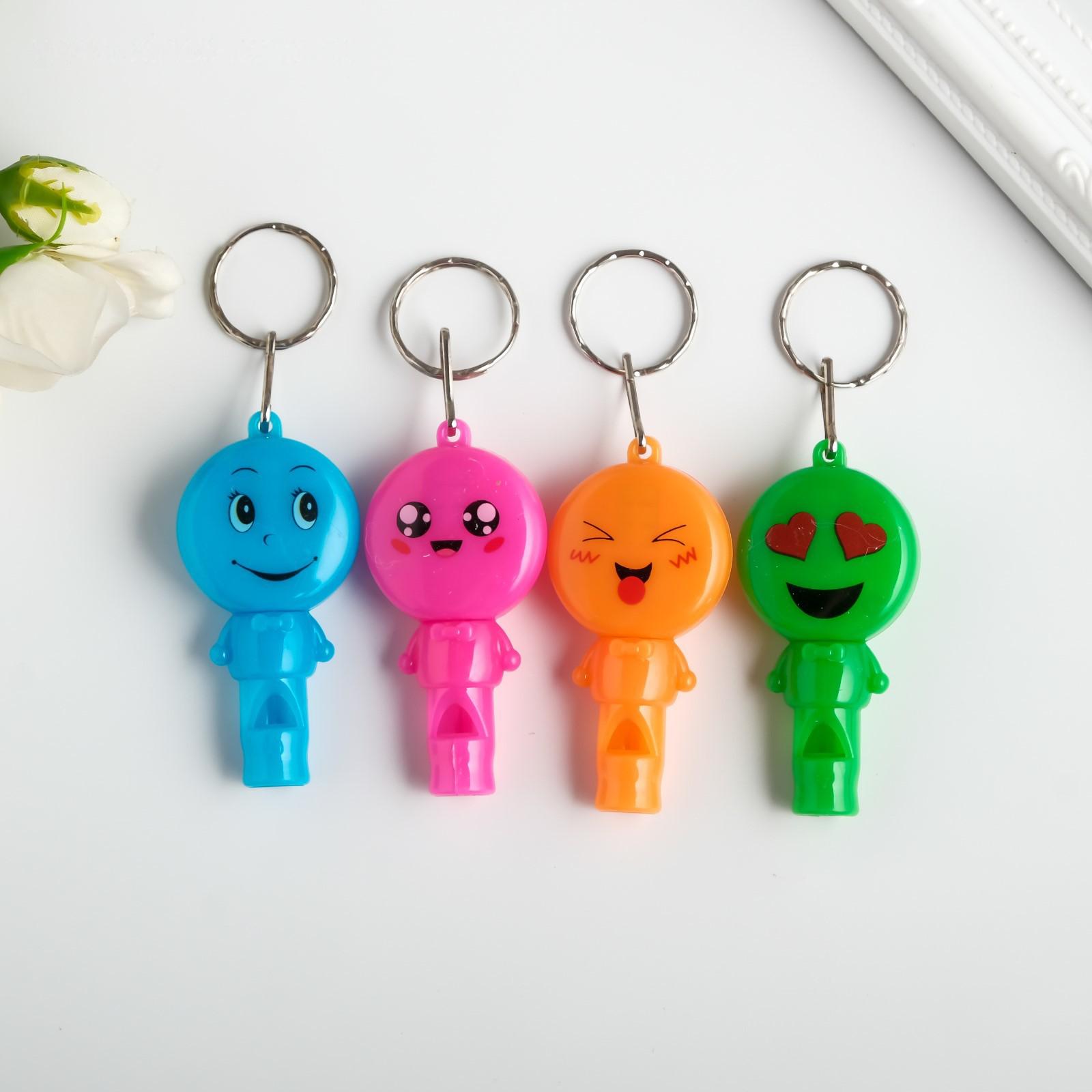 Фонарик свет на кольце свисток "Смайл" мигает МИКС 6,5х3х1 см
