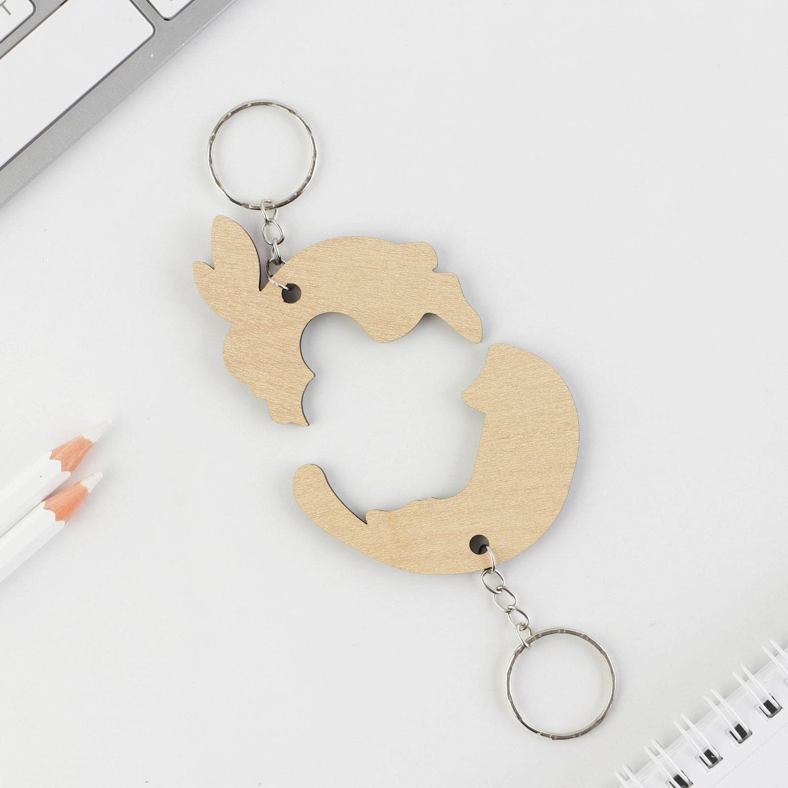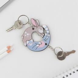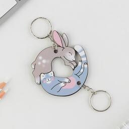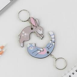 Парные брелоки "Заяц и кот", 6,5 х 7 см