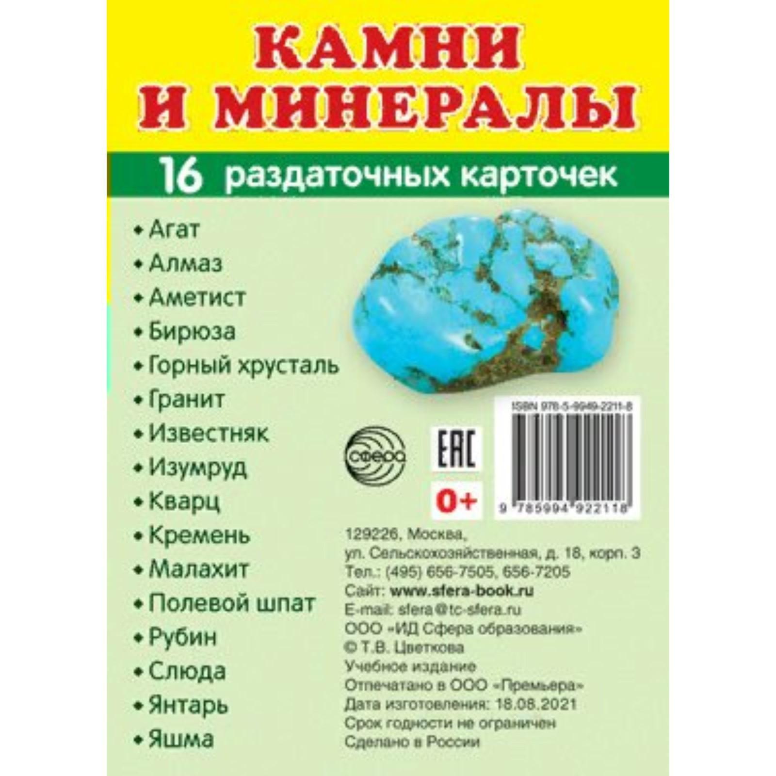 На обороте каждой карточки — название камня на русском языке прописными буквами.