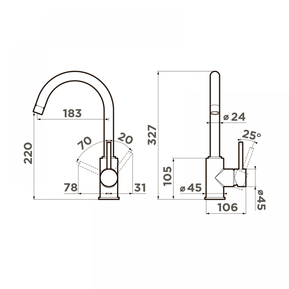 Высота смесителя - 327 мм.
