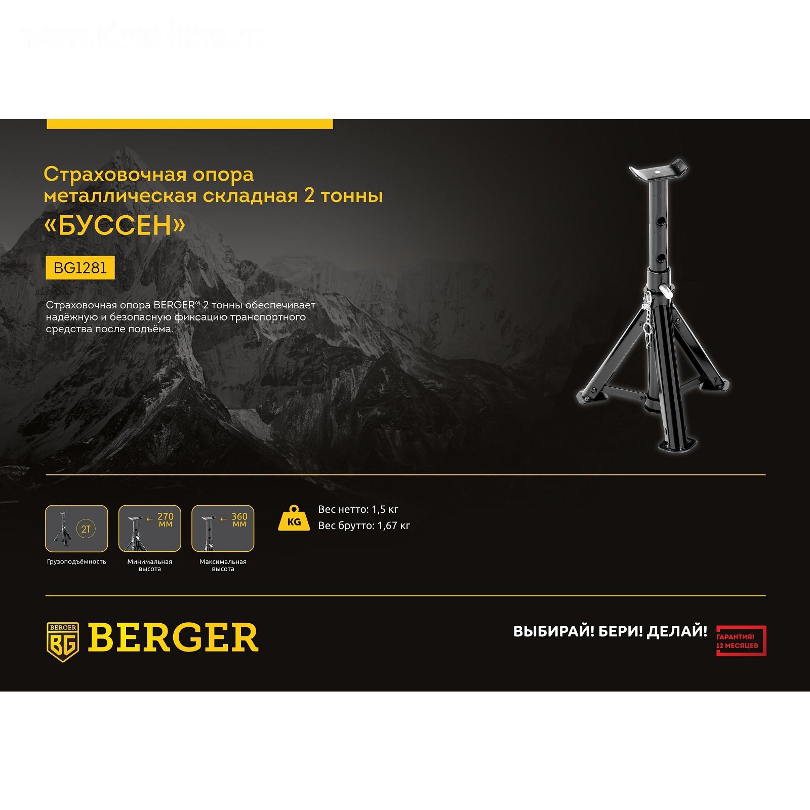 Опора страховочная BERGER BG1281, металлическая, складная, грузоподъемность 2 т