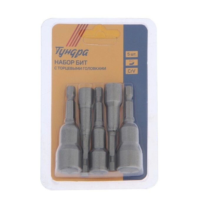 Набор бит с торцевыми головками TUNDRA, CrV, магнит, 6-8-10-12-13 х 65 мм, 5 шт.