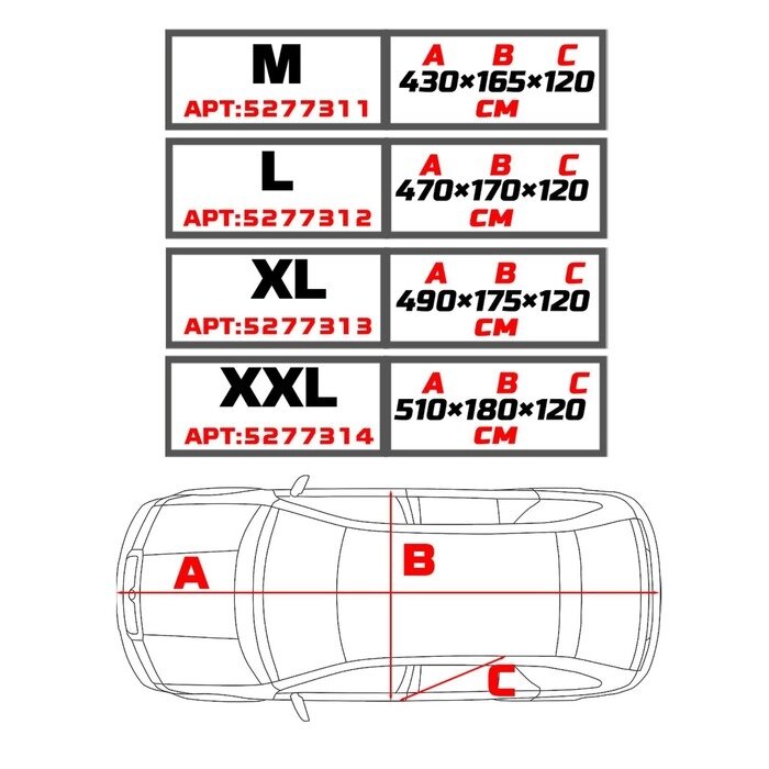 Тент автомобильный CARTAGE, водонепроницаемый, полиэстер, "XXL" , 510180120 см