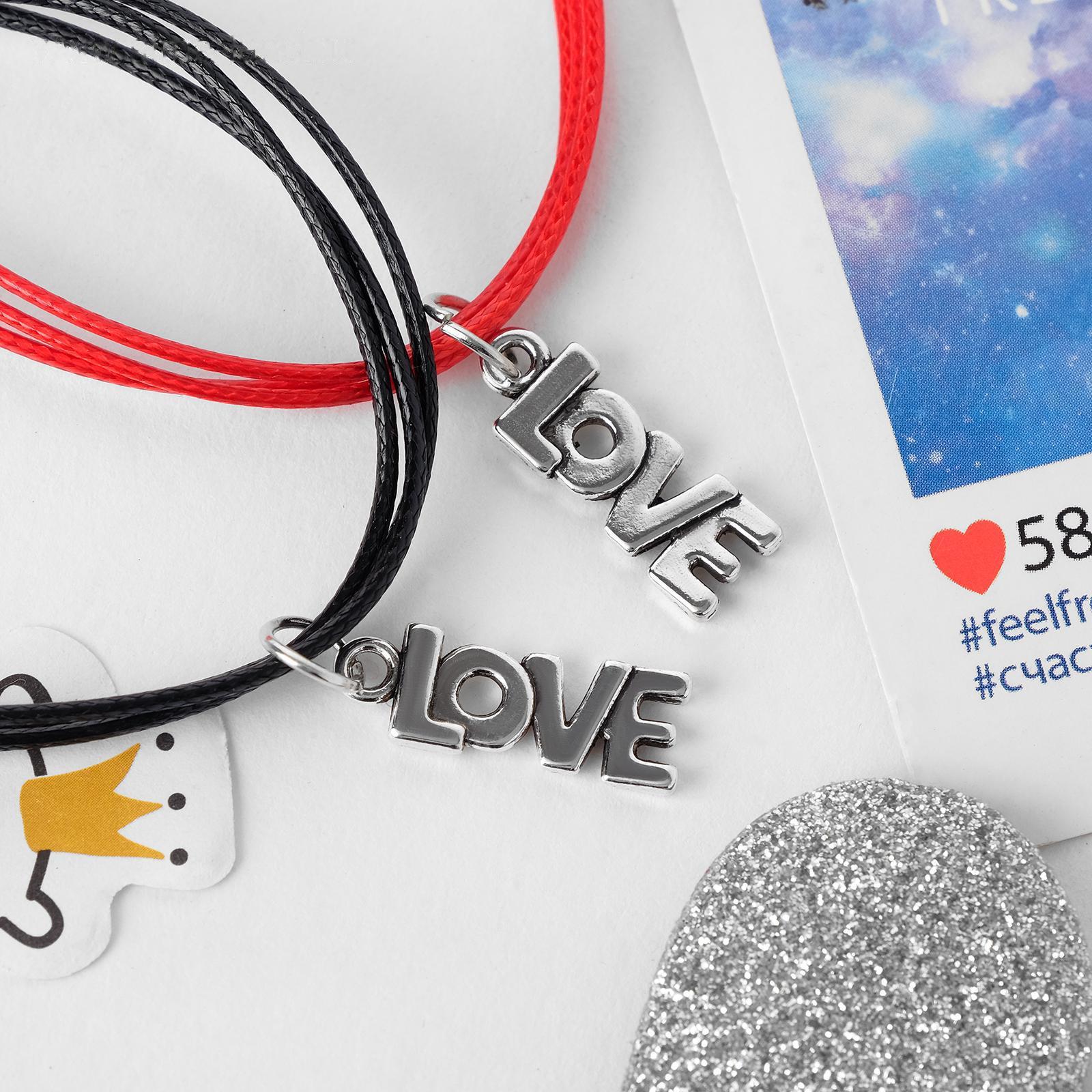 Браслеты "Неразлучники" love, цвет чёрно-красный, L=17см