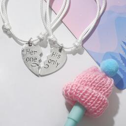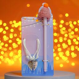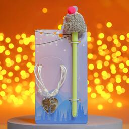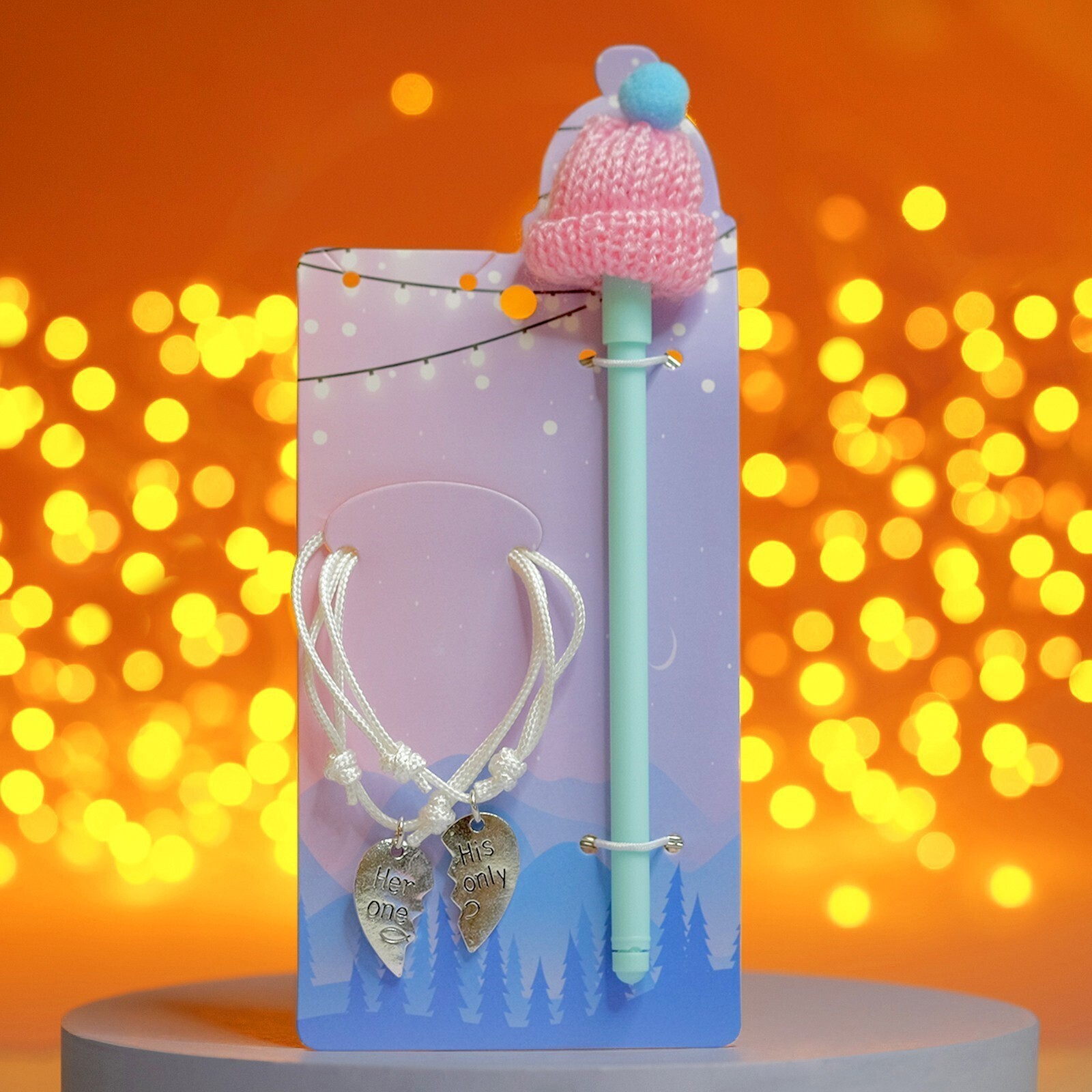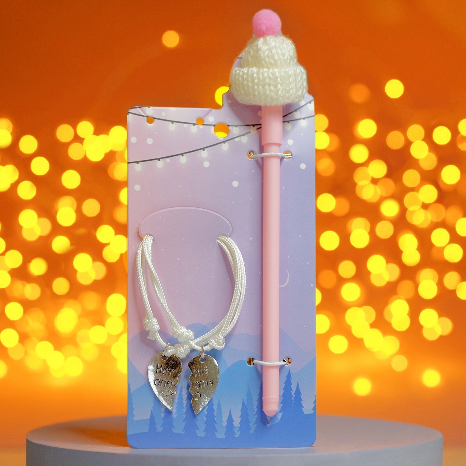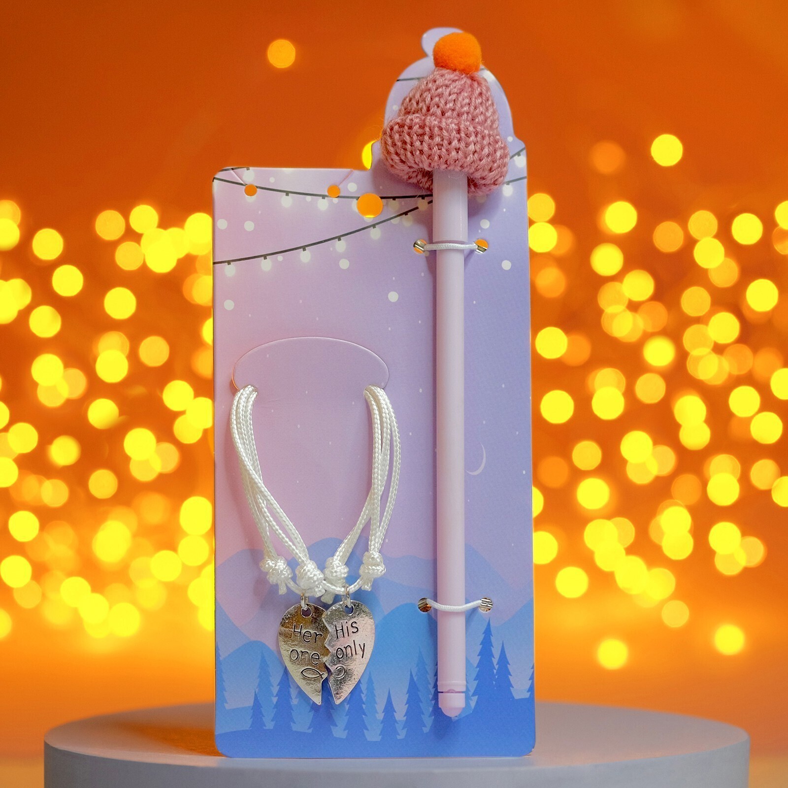 Набор 3 предмета: 2 браслета, ручка "Неразлучники" шапочка , цвет белый с серебром