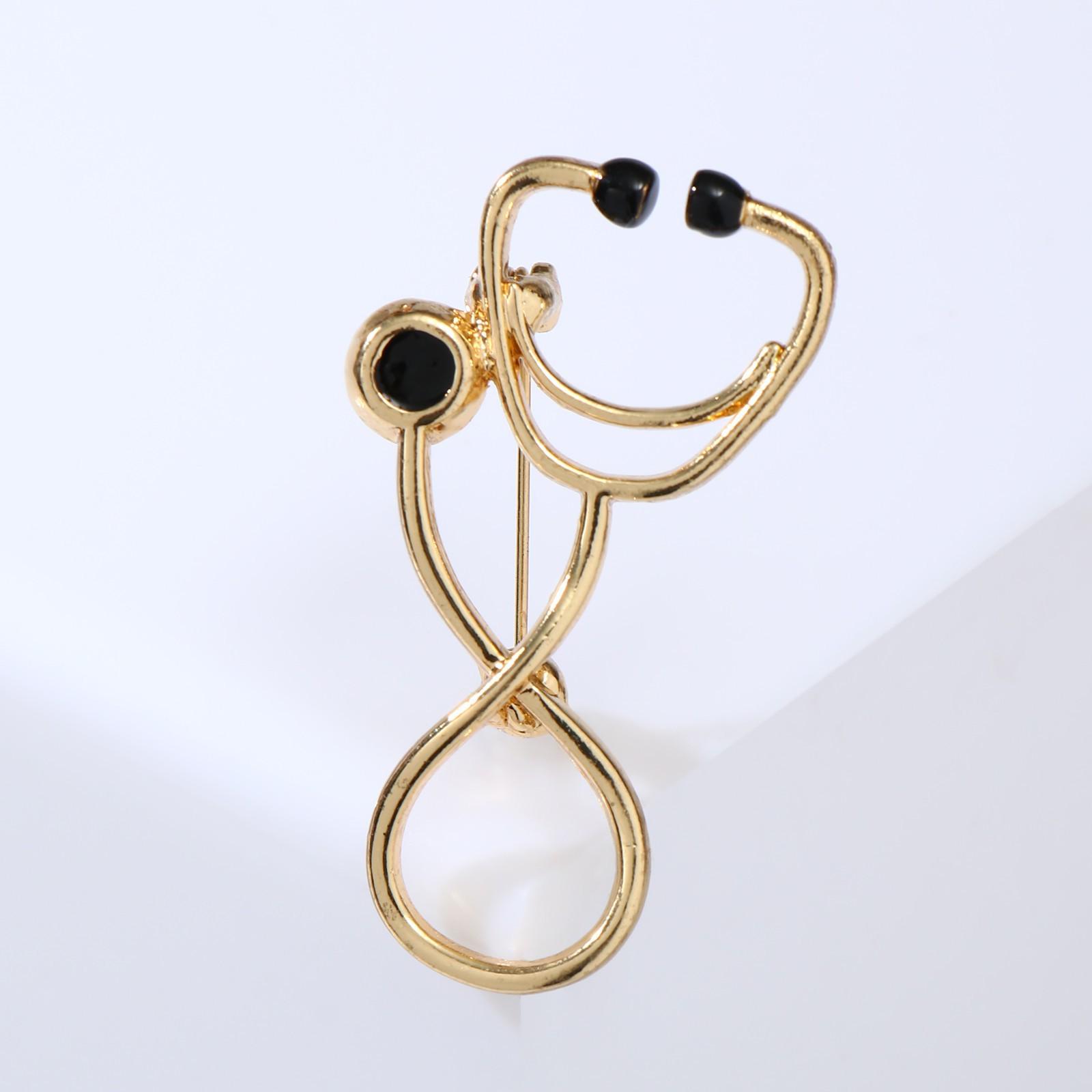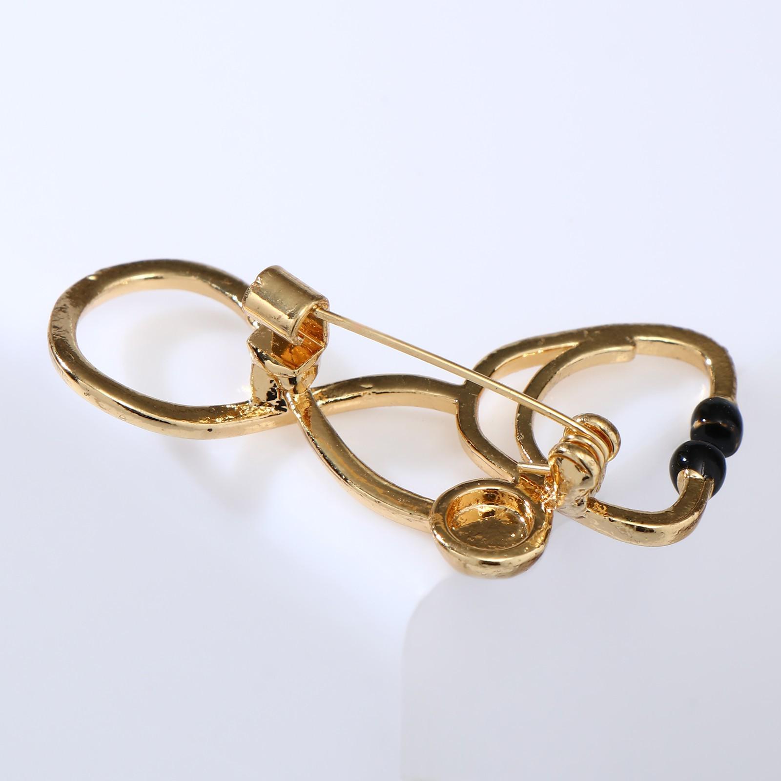 Брошь "Стетоскоп" петля, цвет чёрный в золоте