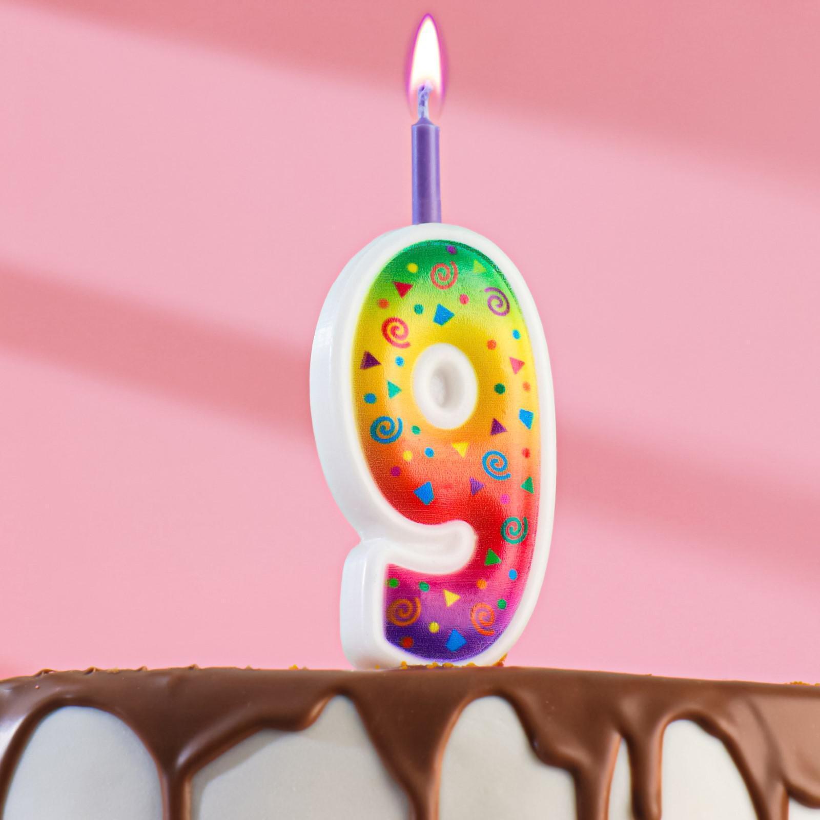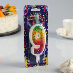 Свеча для торта "Цветное пламя", 12.3 см, цифра "9"