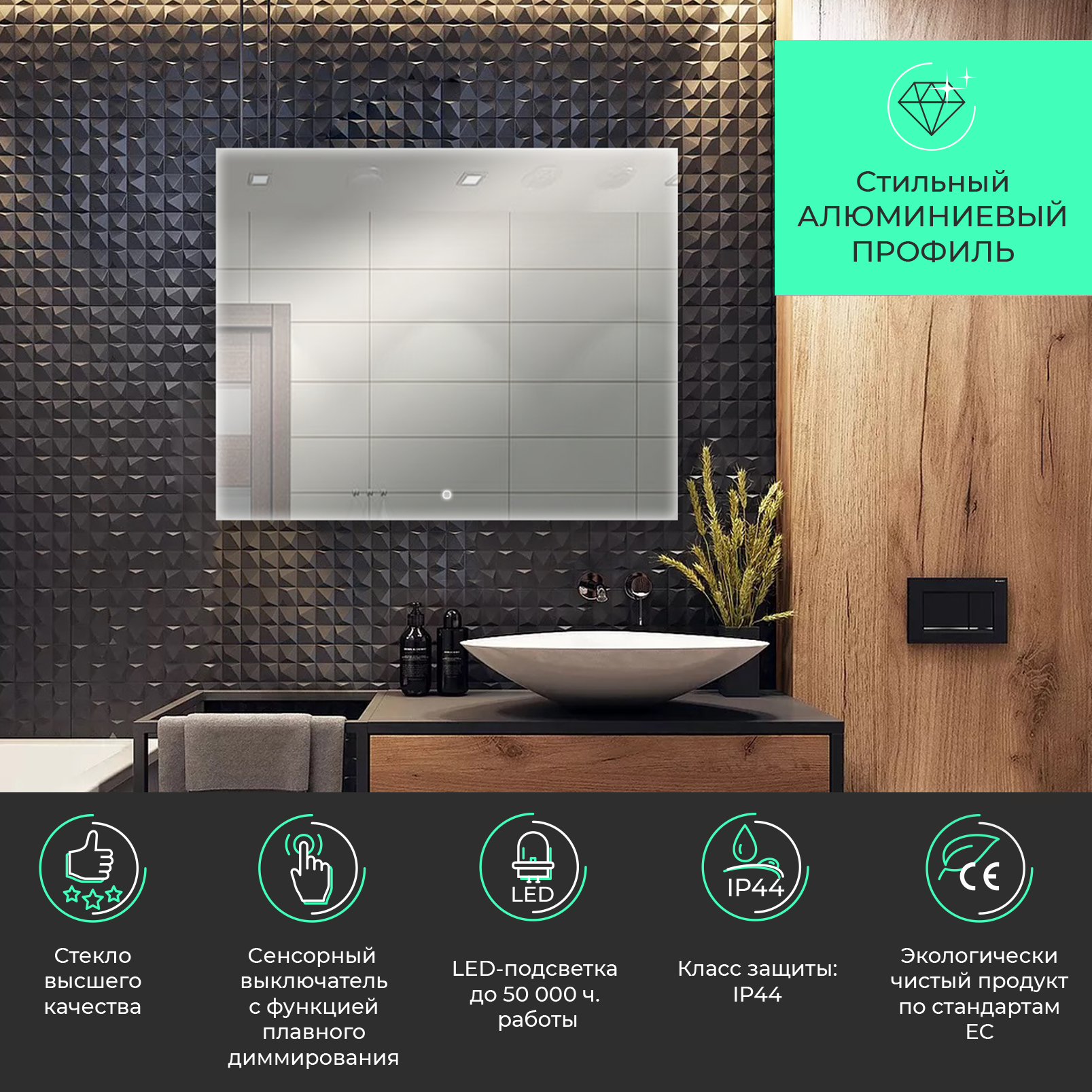 • Форма зеркала прямоугольная