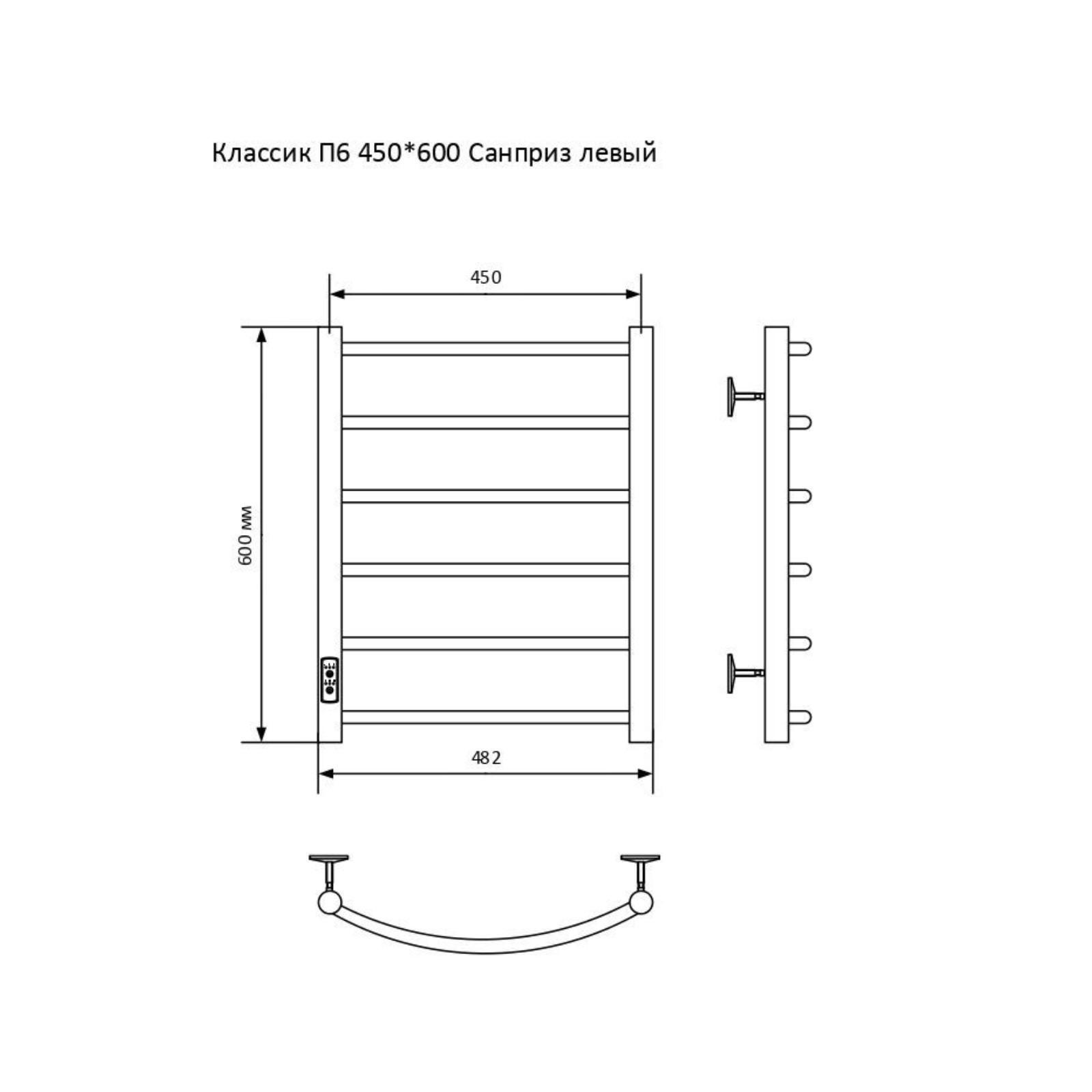 Полотенцесушитель электрический "САНПРИЗ" Классик П6, 450x600 мм, левый, хром